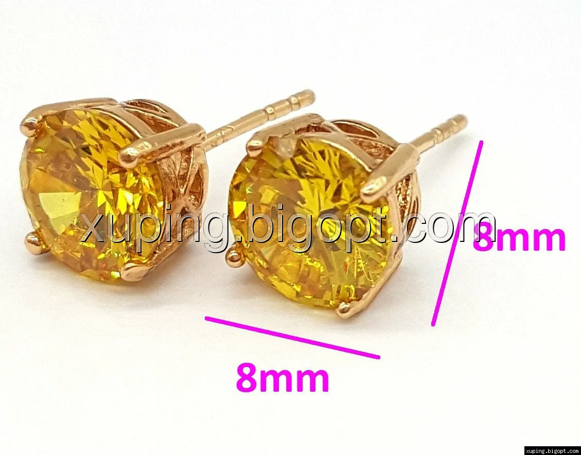 Серьги гвоздики, золотистый цирконий, 8мм*8мм