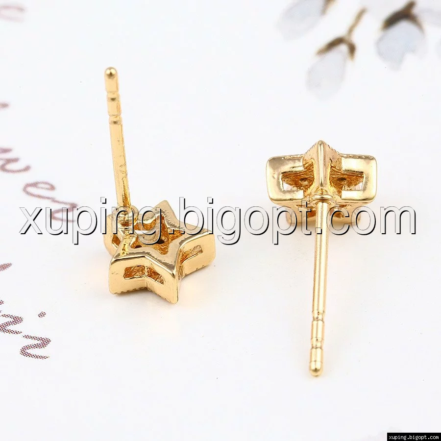 Серьги гвоздики, Звездочка с цирконием, позолота