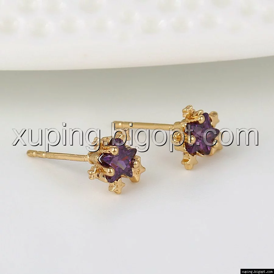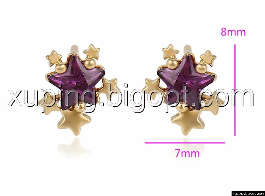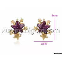 Серьги гвоздики, Звездочки с Фиолетовым цирконием, позолота