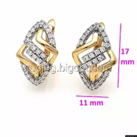 Серьги Зигзаг с камнями, англ.замок, позолота+родий