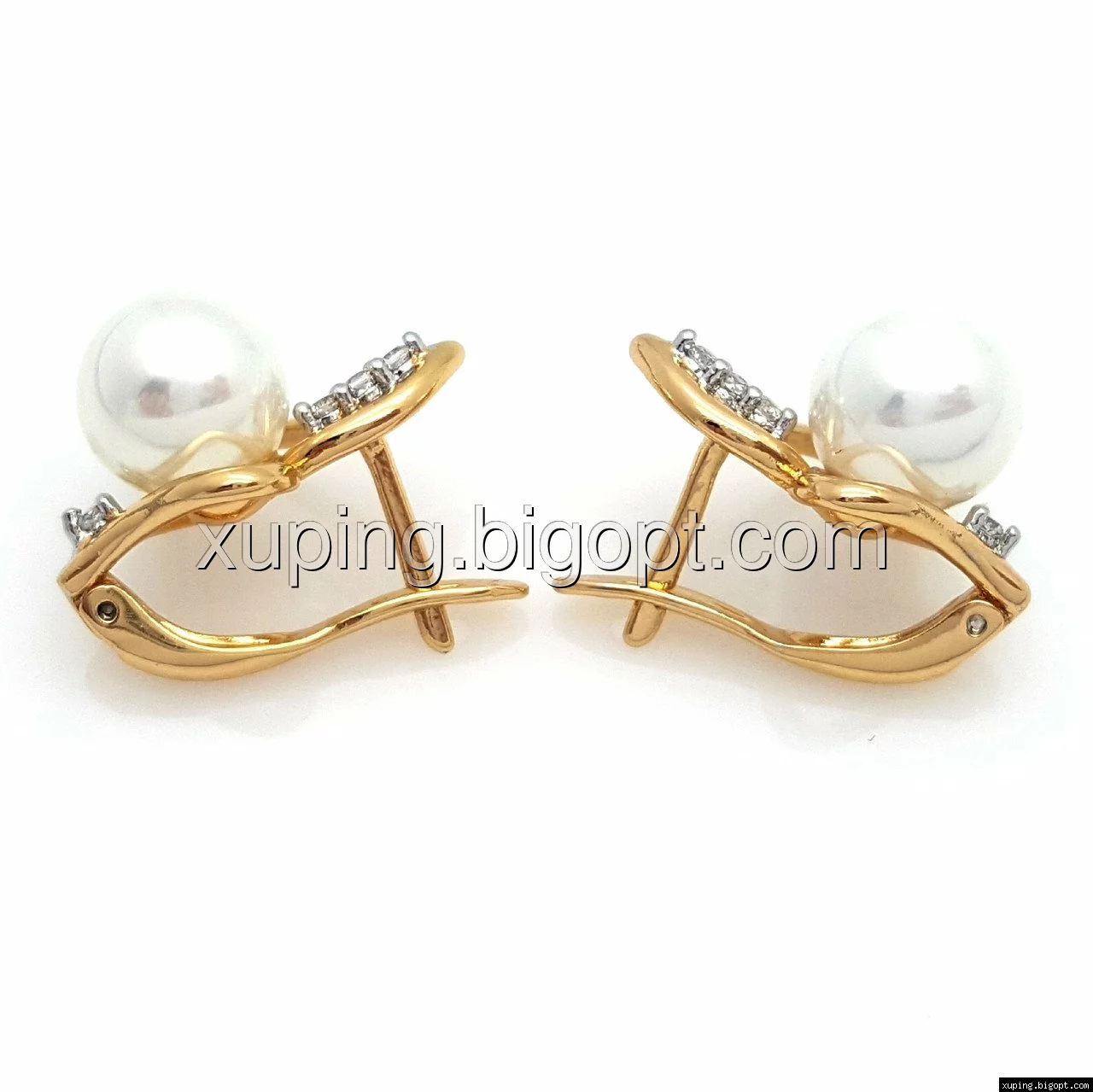Серьги Листик с Жемчугом и камнями, англ.замок, позолота+родий