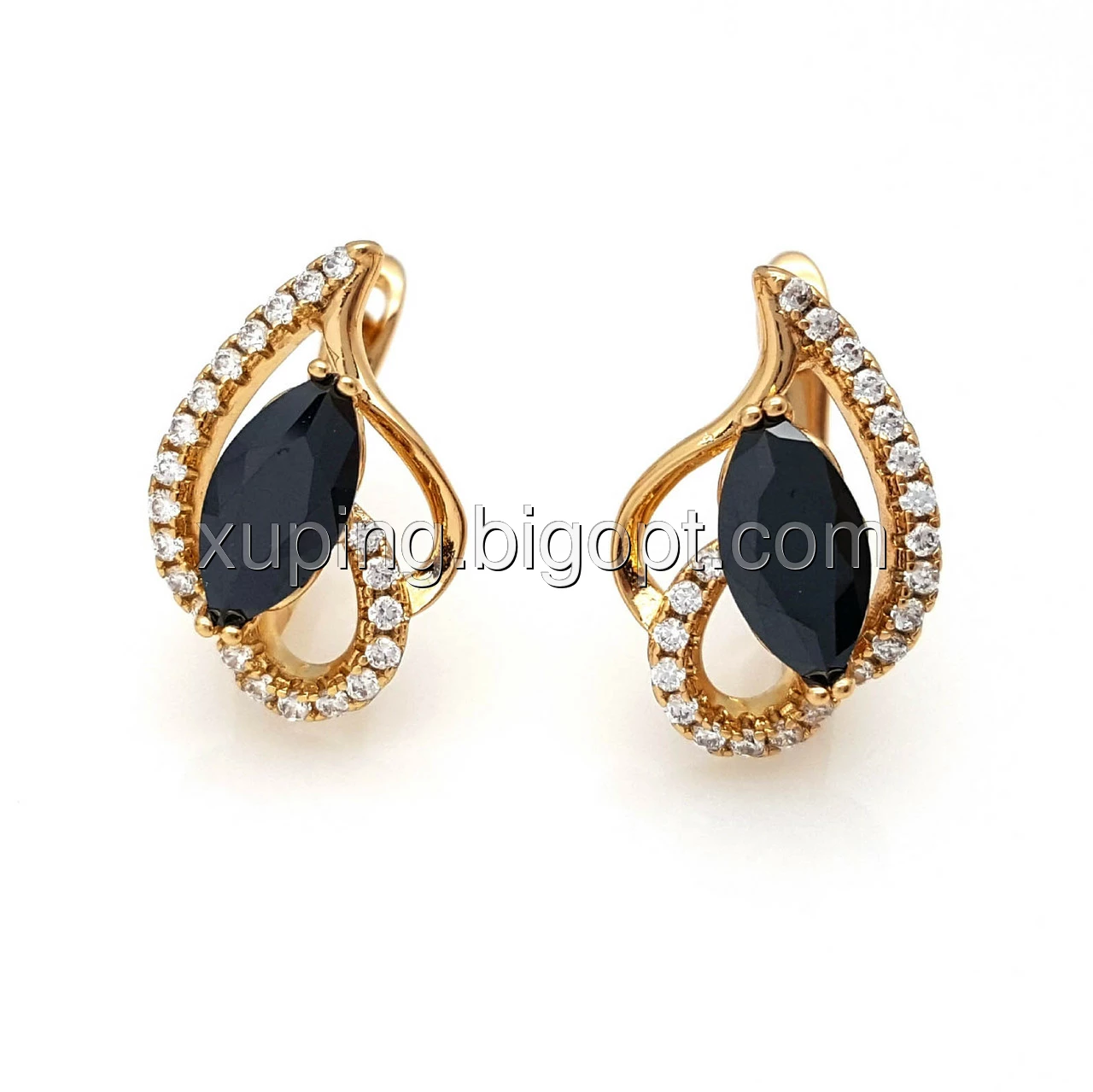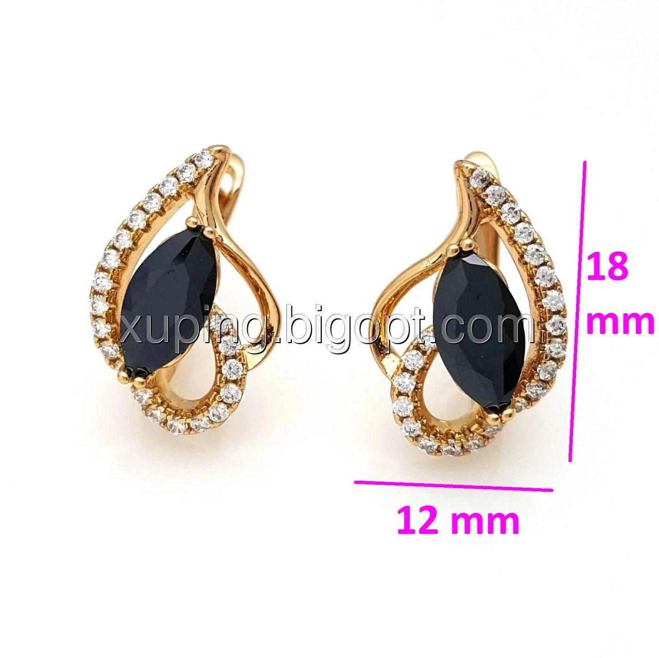 Сережки Краплинка з чорним цирконієм, англ.замок, позолота Xuping,18К