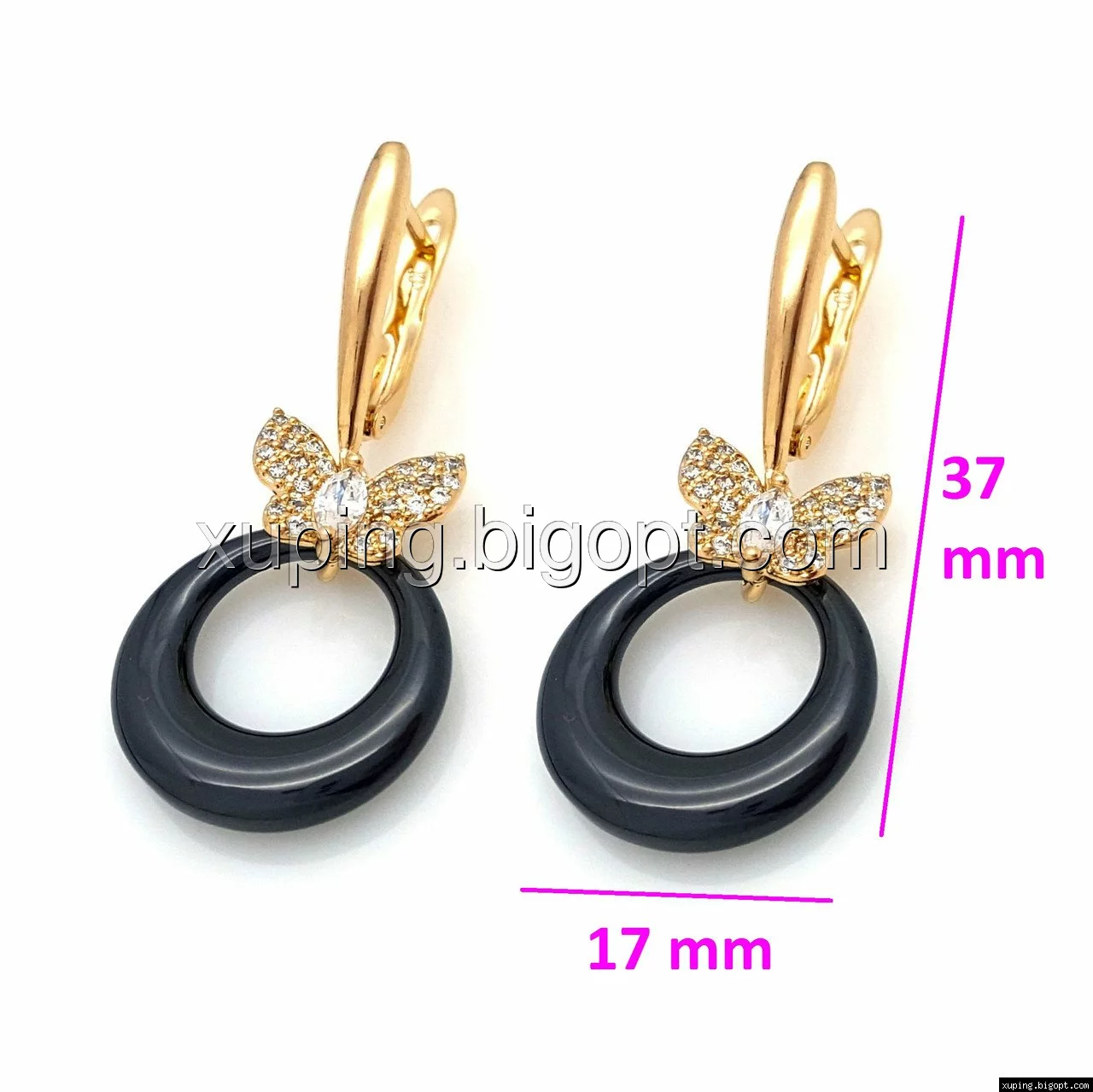 Серьги Керамический Круг и Бабочка, с россыпью камней, англ.замок, позолота Xuping