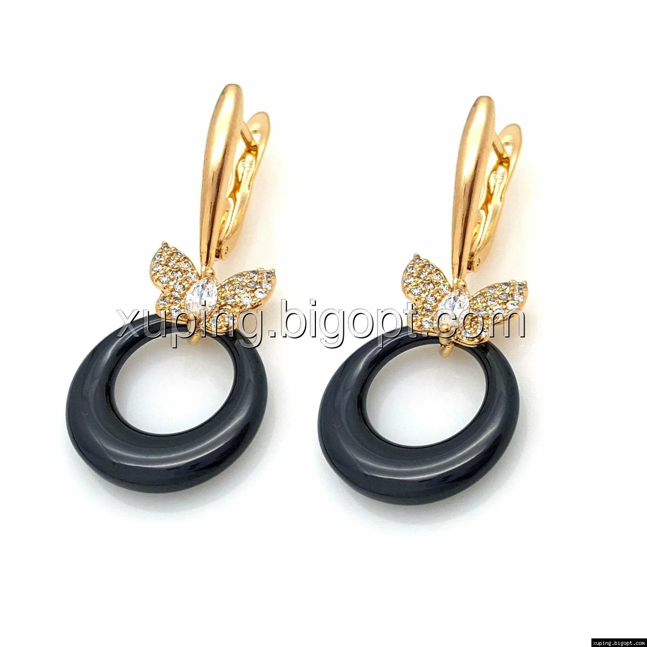 Серьги Керамический Круг и Бабочка, с россыпью камней, англ.замок, позолота Xuping