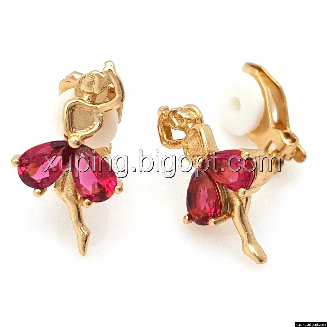 Серьги- клипсы 704814, "Звезда Балета" с рубиновым цирконием, позолота Xuping