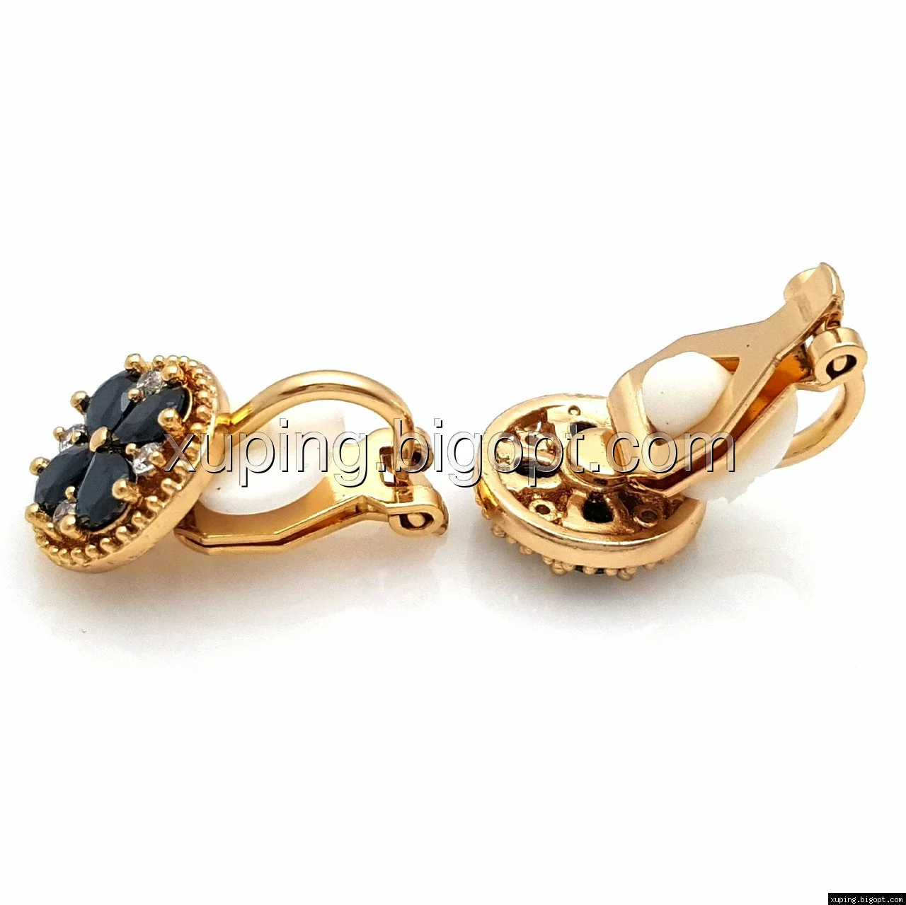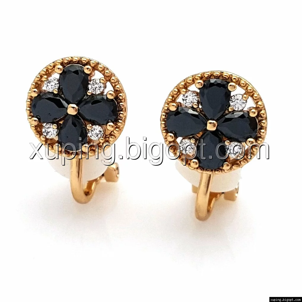 Серьги-клипсы, Черный Цветок, с камнями, позолота Xuping
