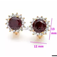 Серьги-клипсы, Цветок с красным цирконием, позолота Xuping