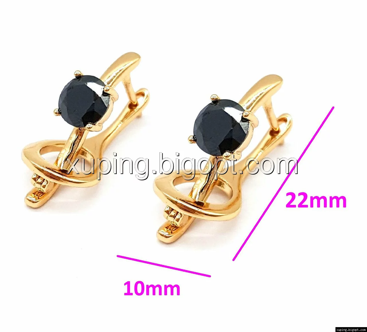 Серьги Классика с черным цирконием, англ.замок, позолота