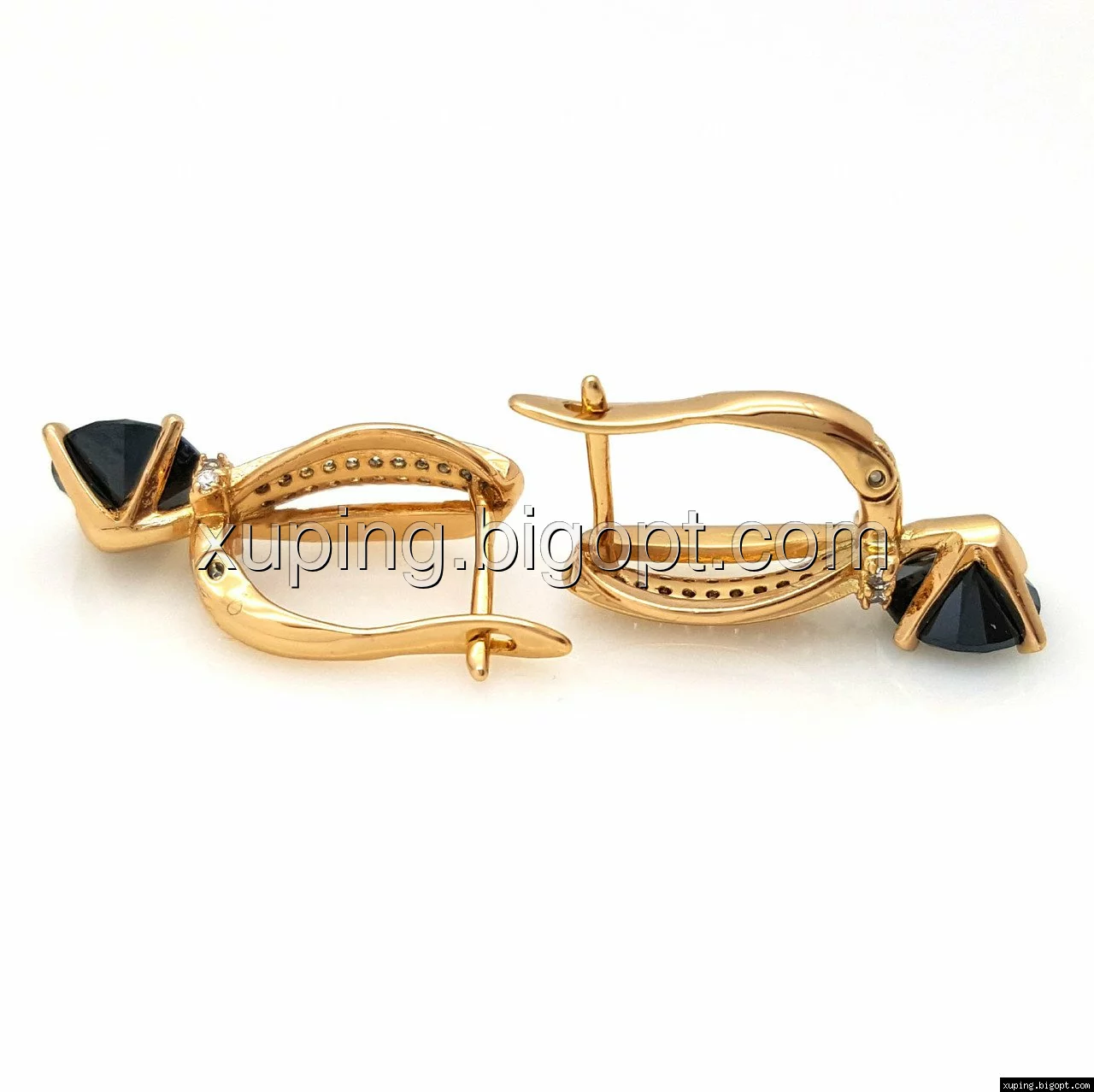 Серьги Классика с черным цирконием, англ.замок, позолота Xuping