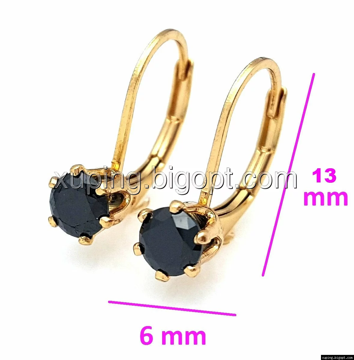 Сережки Класика з чорним цирконієм, позолота Xuping, 18К
