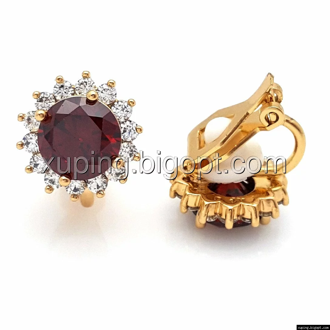 Серьги-клипсы, Цветок с красным цирконием, позолота Xuping