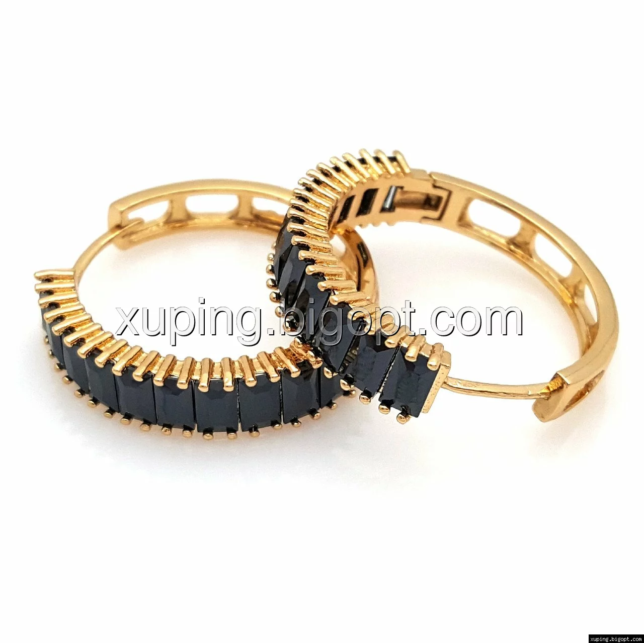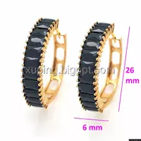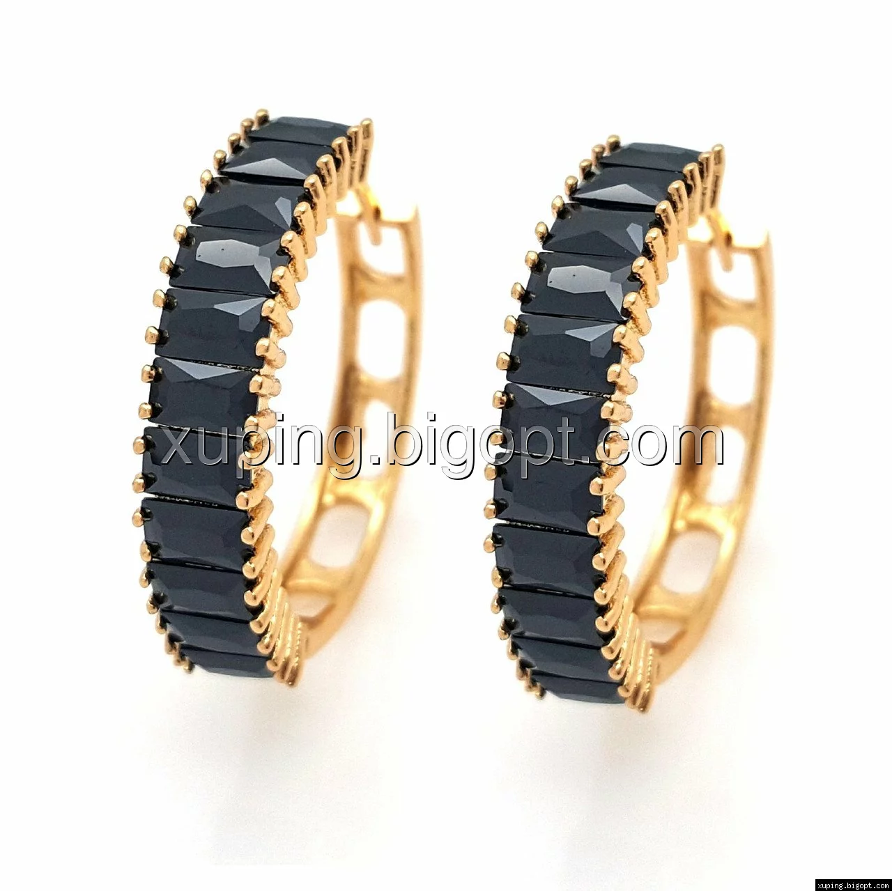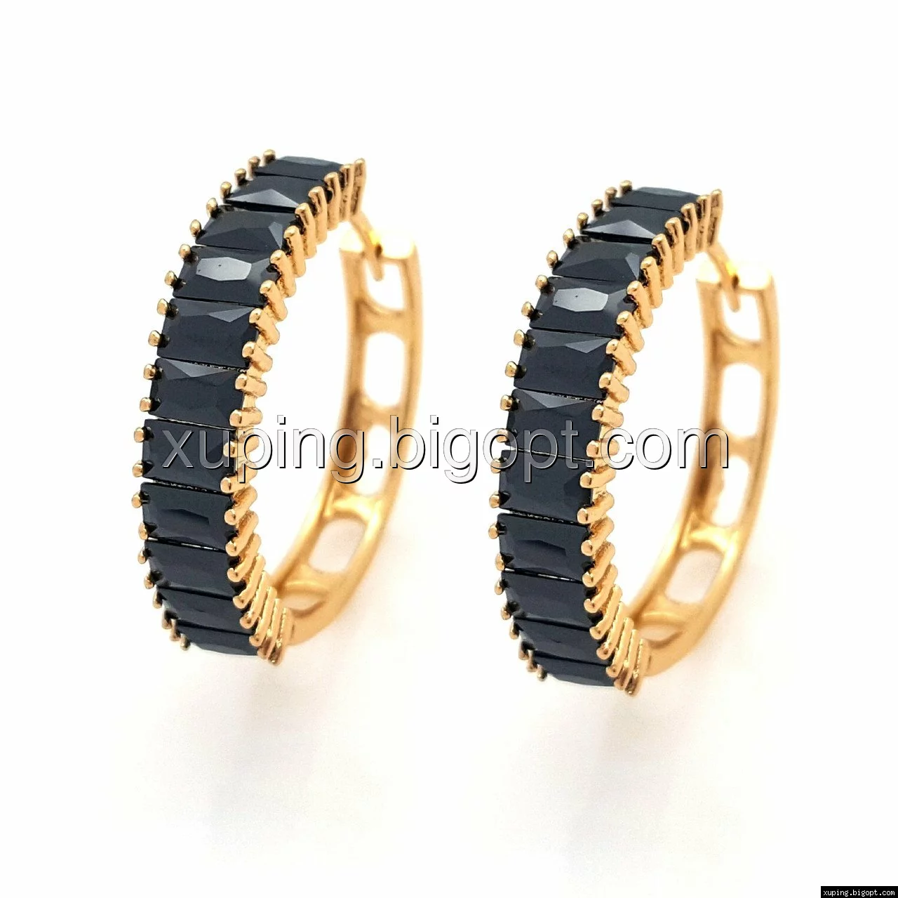 Серьги Кольца, с черным цирконием, позолота Xuping