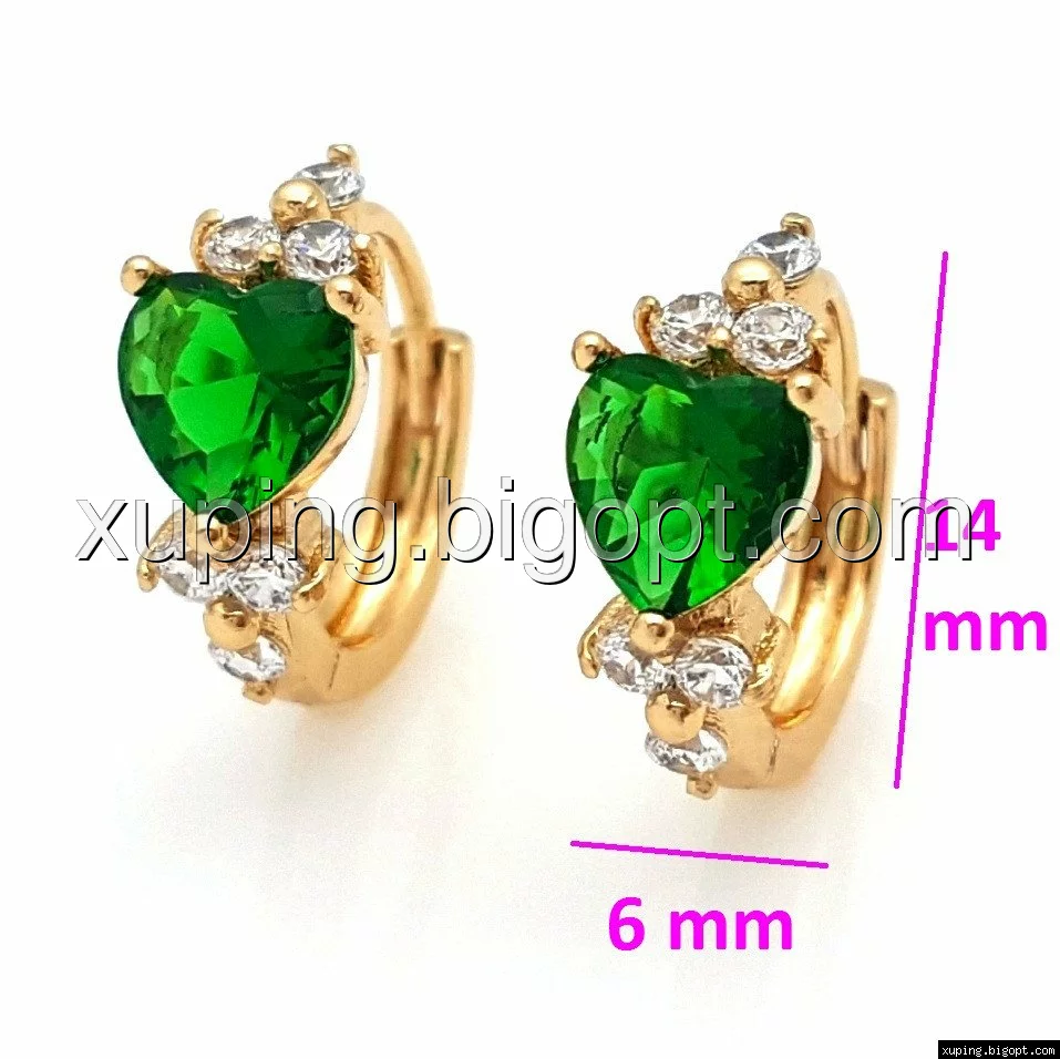 Серьги колечка, Хрустальное Сердце, с зеленым цирконием, позолота Xuping