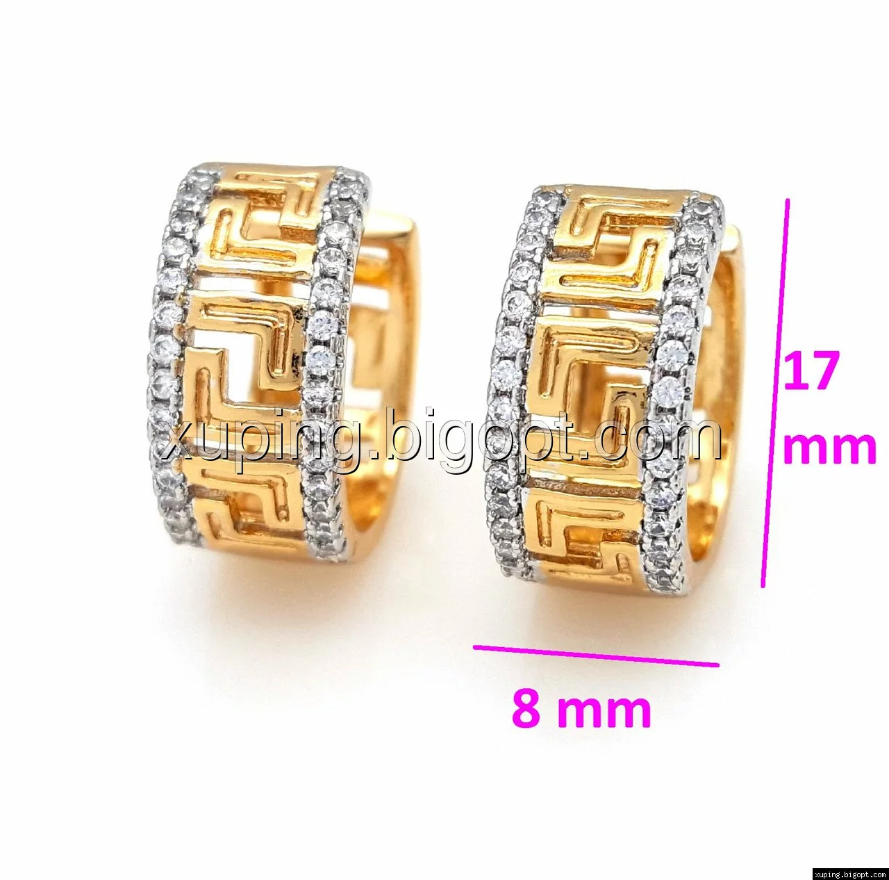 Серьги Колечка с греческим рисунком и вставками циркония, позолота+родий, Xuping
