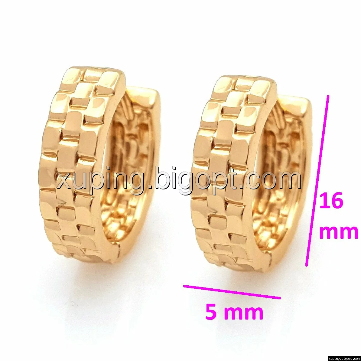 Серьги колечка, с рельефным узором, позолота Xuping