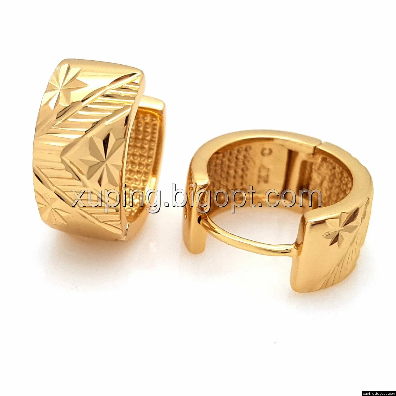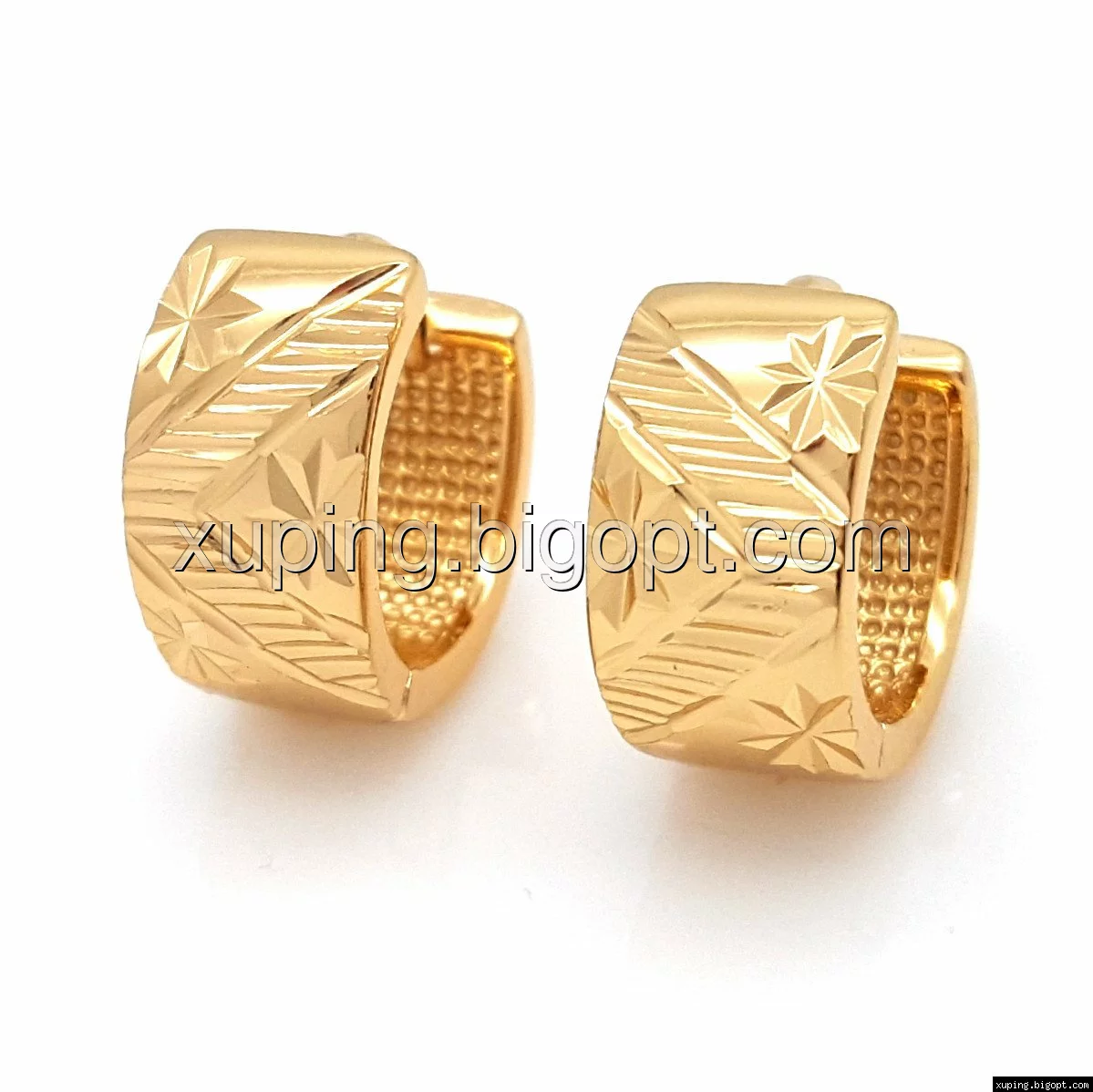 Серьги колечка, с резным узором, без камней, позолота Xuping