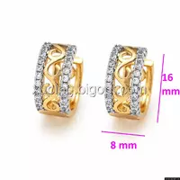 Серьги Колечка с завитками, и две дорожки камней, позолота+родий
