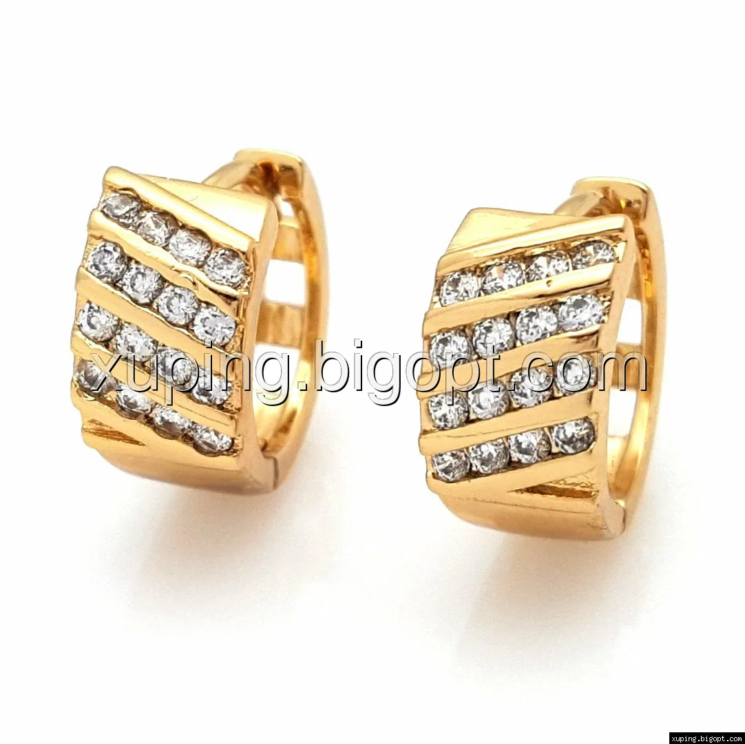 Серьги колечка, Диагональные Дорожки, с камнями, позолота Xuping