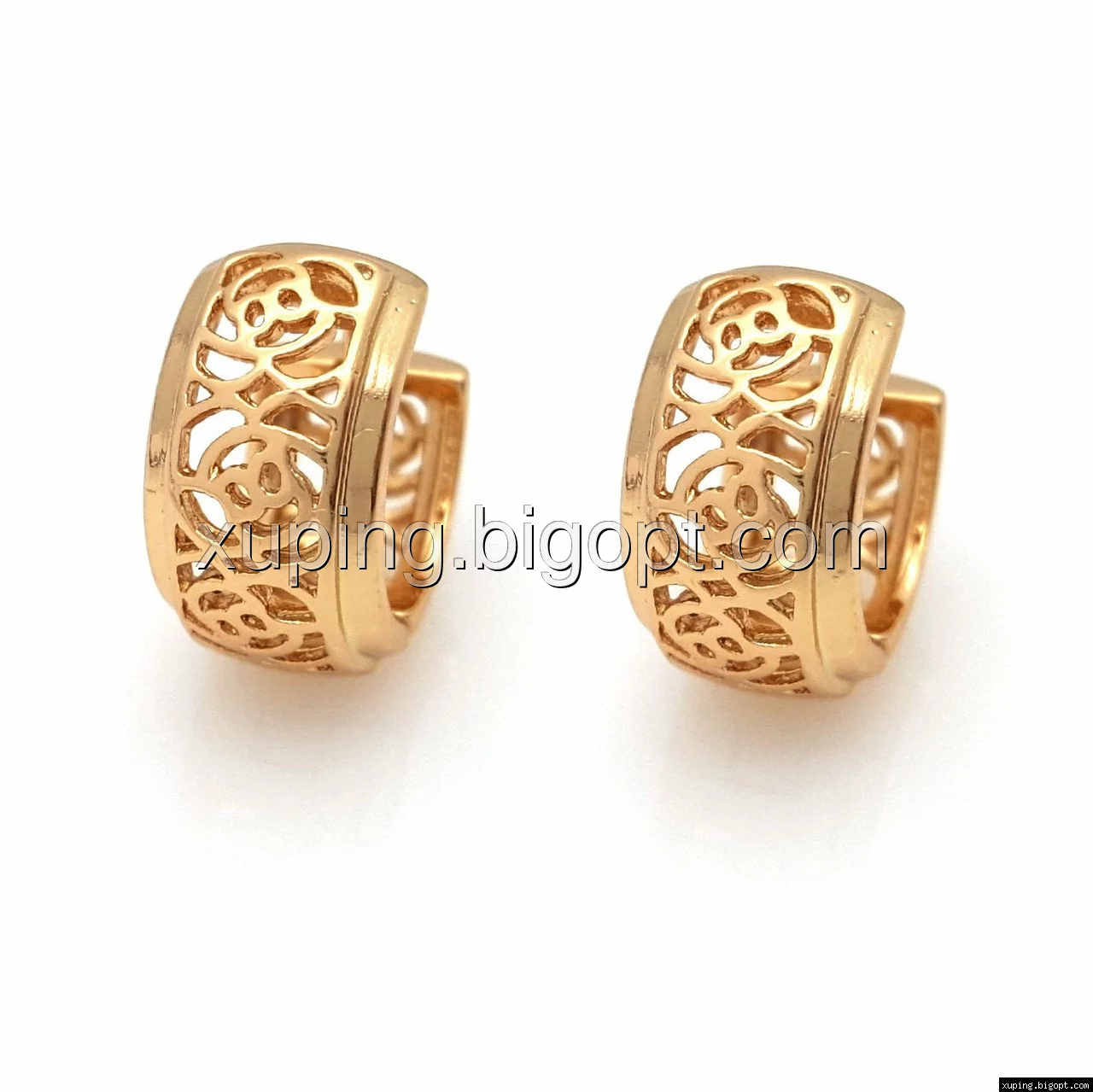 Серьги Колечка с ажурным узором, без камней, позолота Xuping