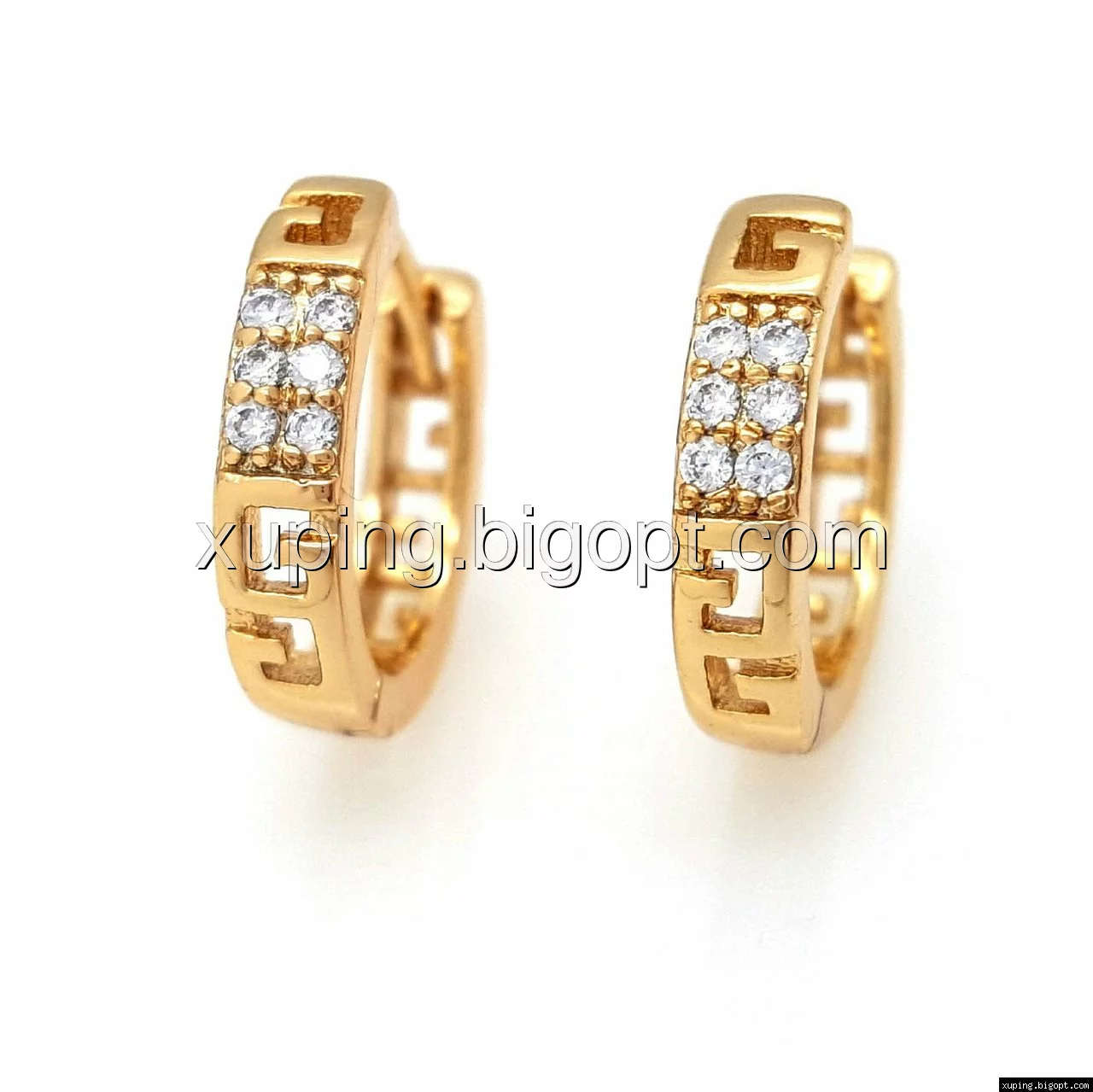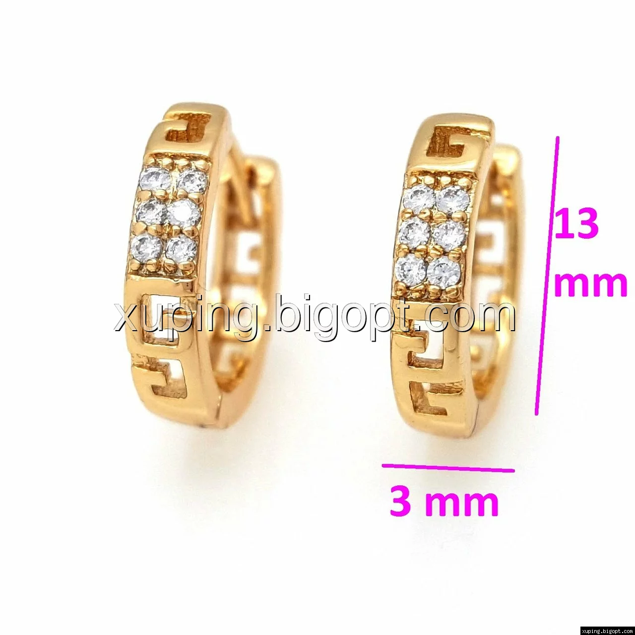 Серьги Колечка с греческим узором и камнями, позолота Xuping