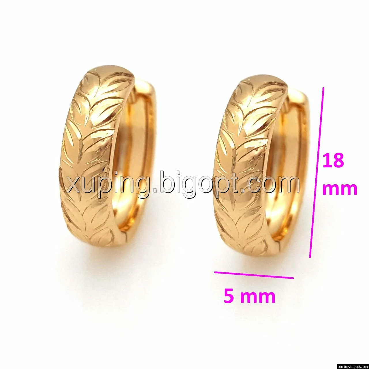 Сережки Кільця з різьбленим колоском, позолота Xuping, 18К
