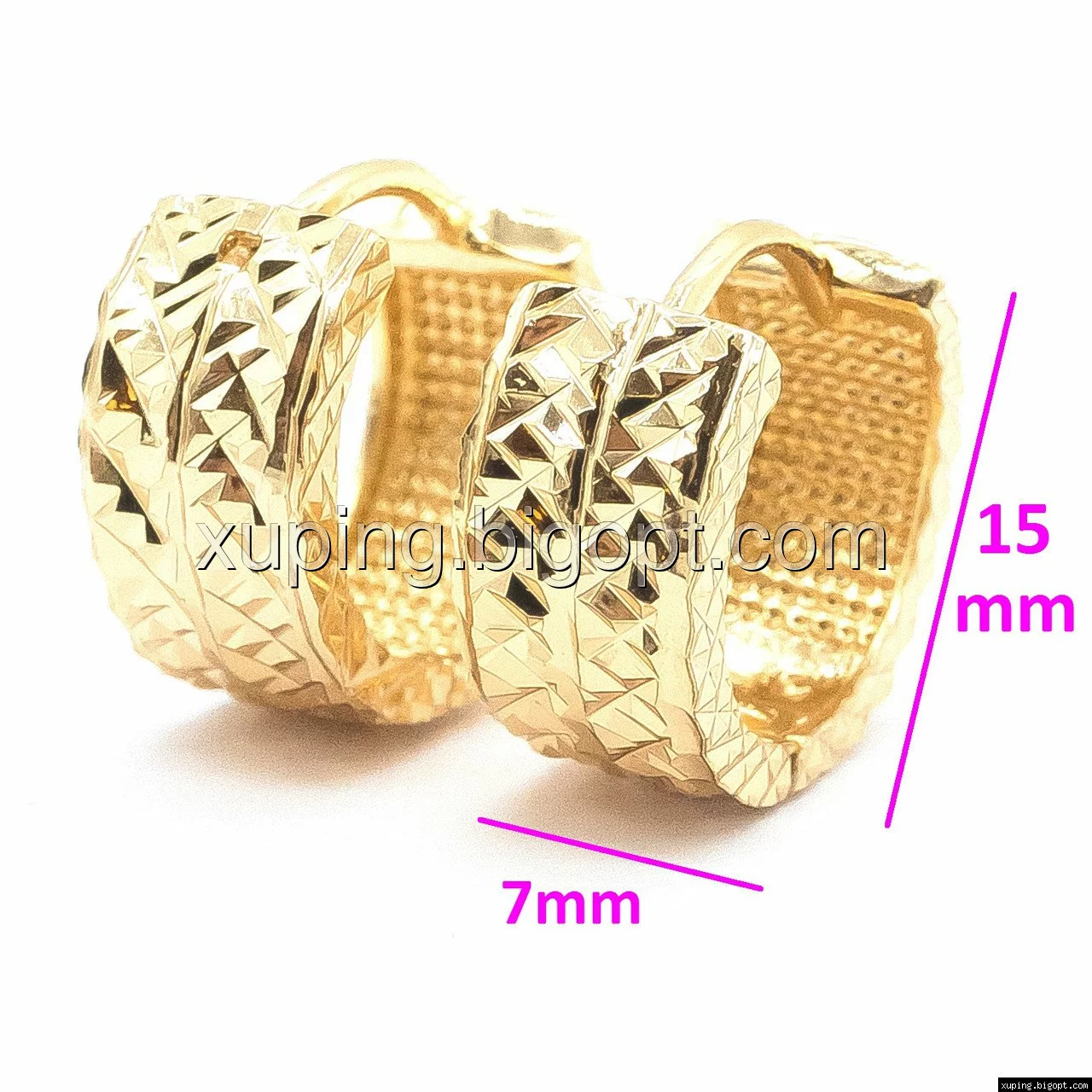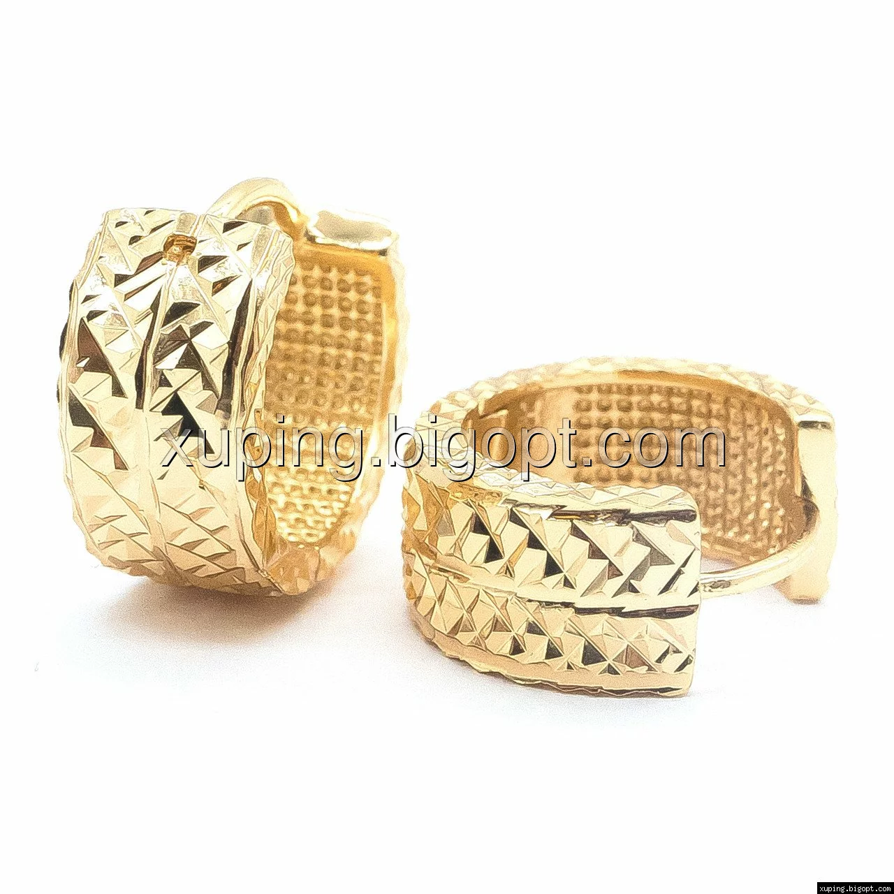 Сережки Колечка з різбленням, без амінчиків, позолота Xuping, 18К