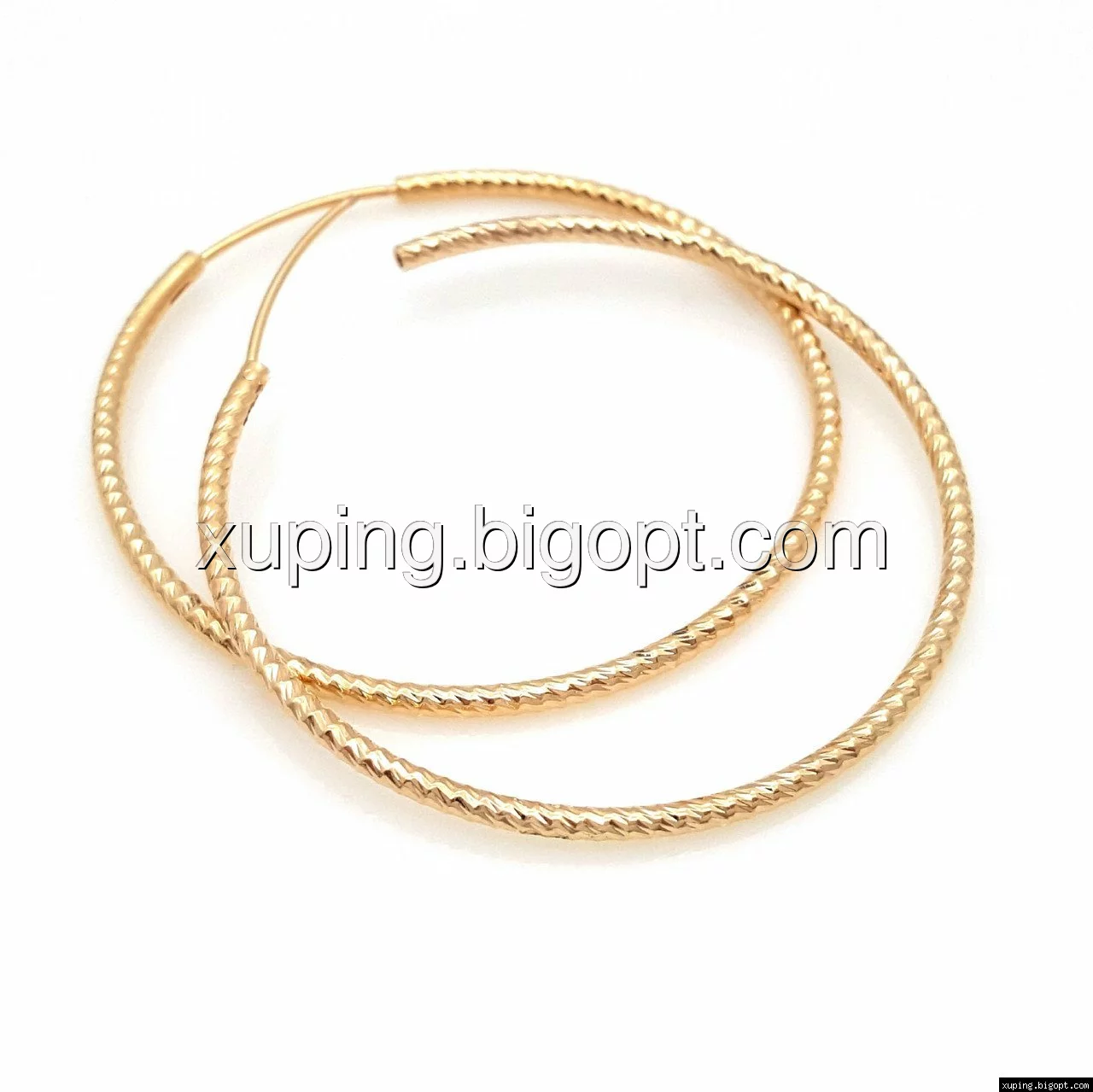 Серьги Колечка с резным узором, без камней, позолота Xuping