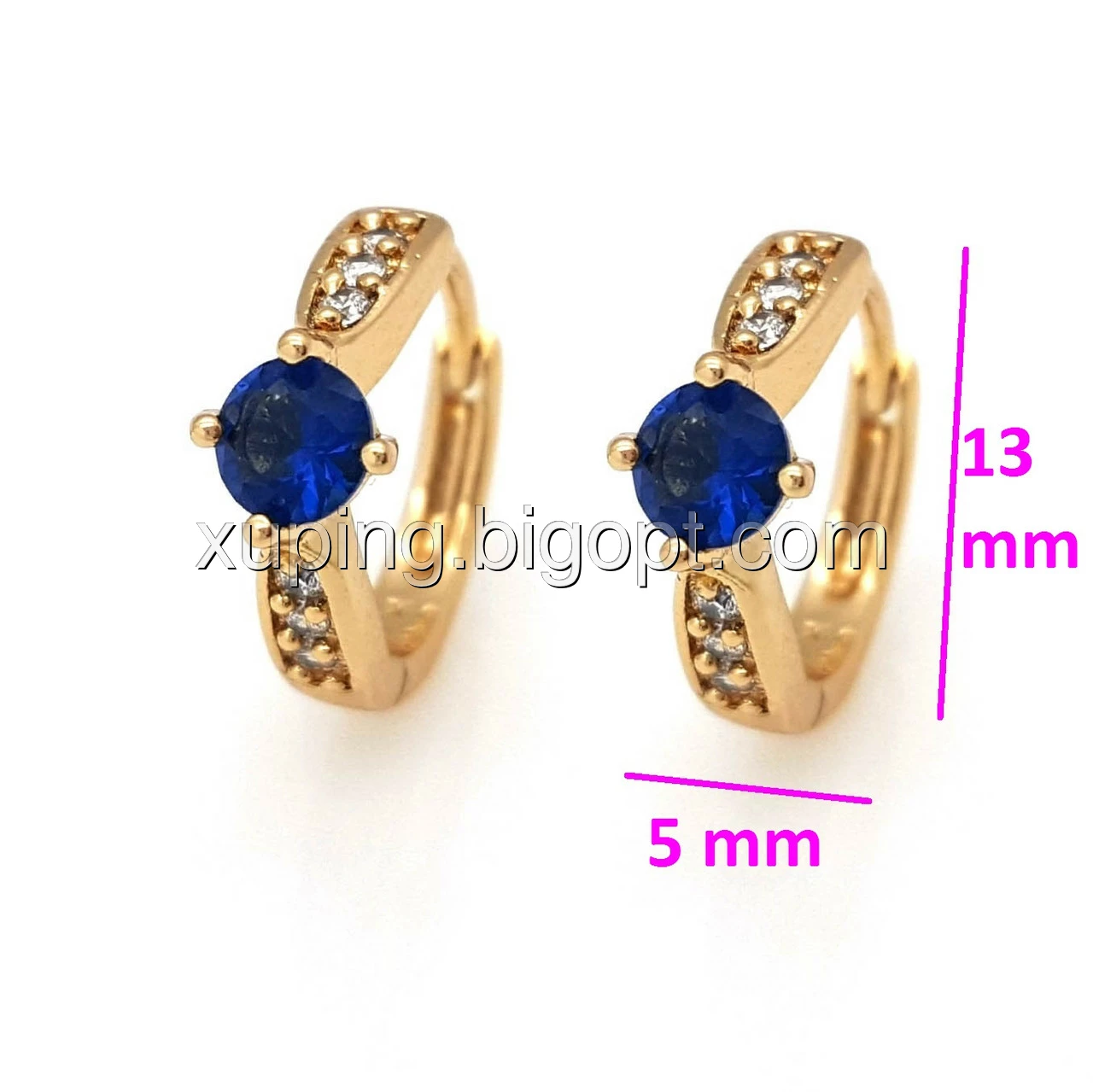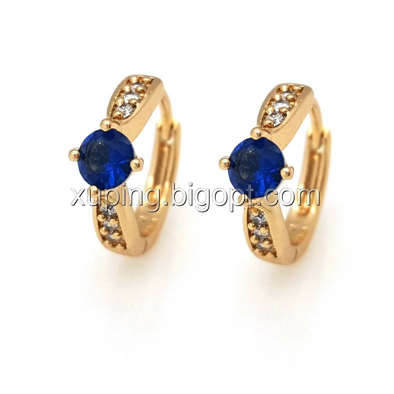 Сережки Класичні з синім цирконієм, позолота Xuping, 18К