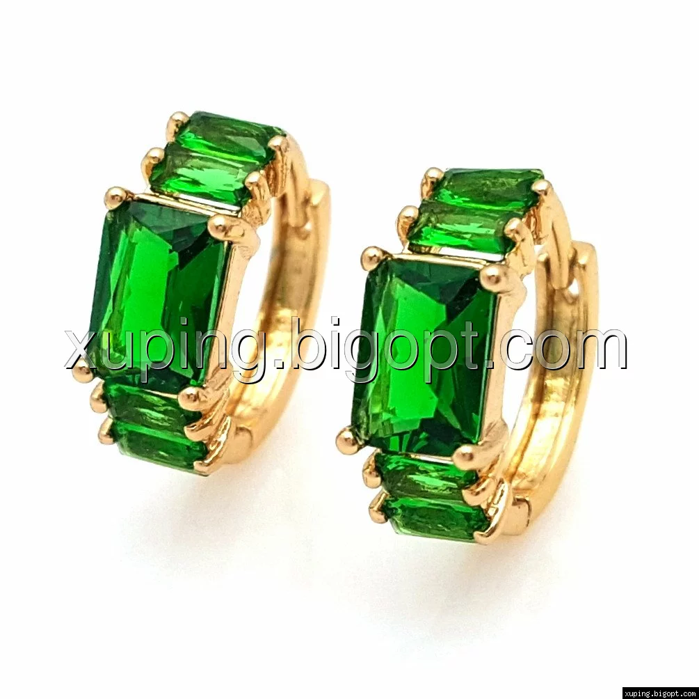 Серьги Колечка, с зелеными камнями, позолота Xuping