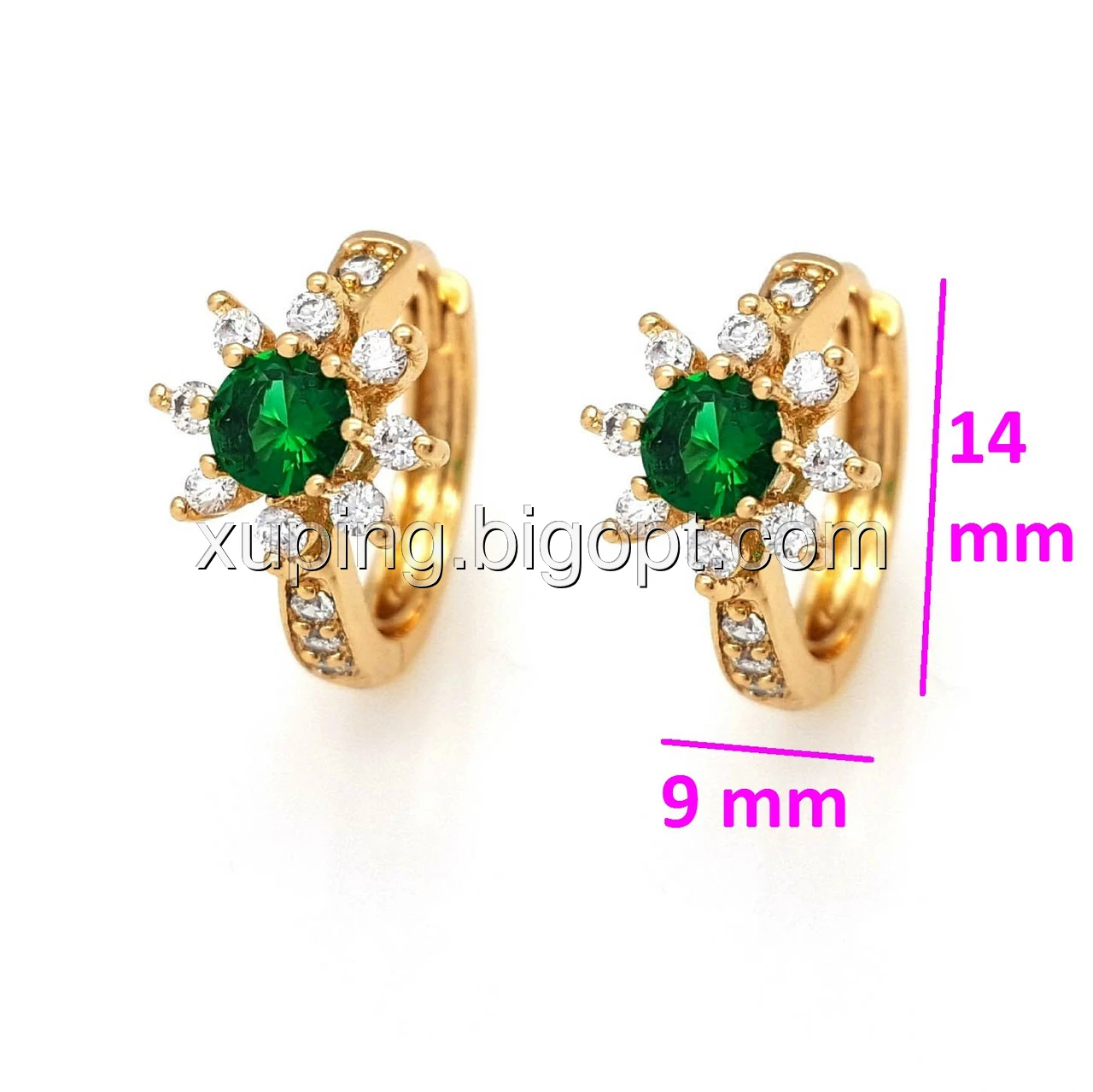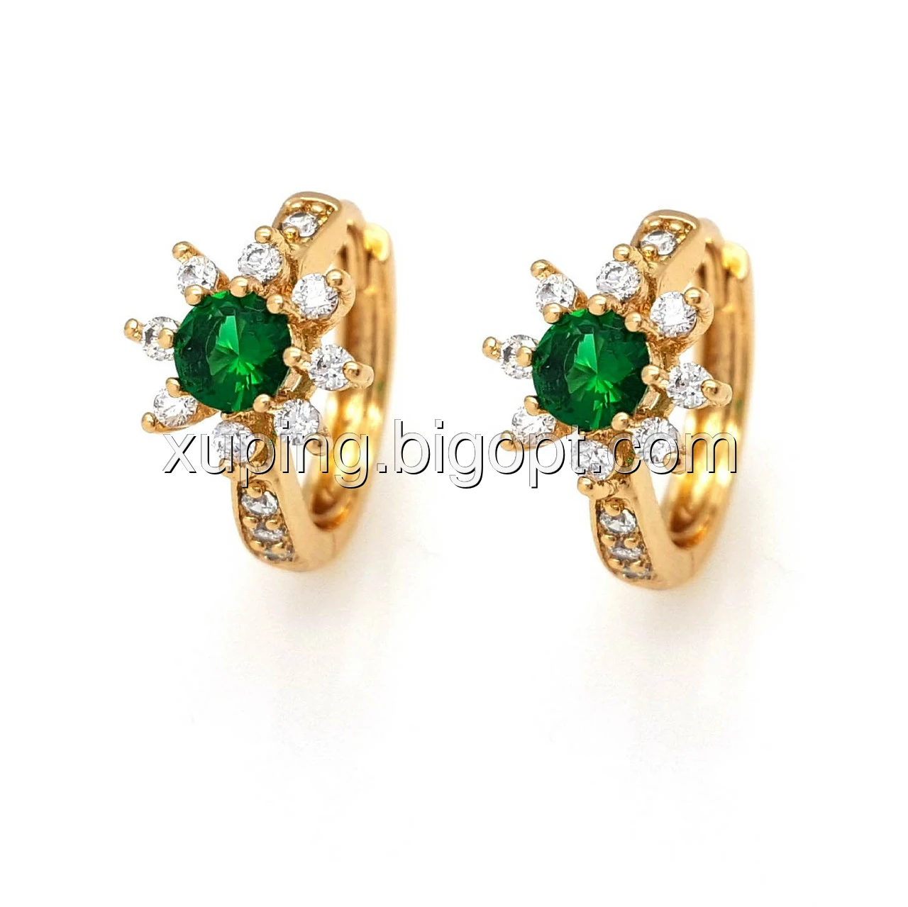 Сережки, Квіточка з зеленим цирконієм, позолота Xuping,18К
