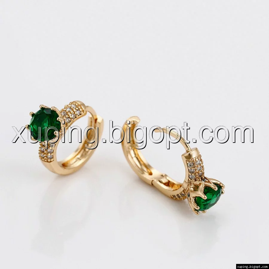 Серьги колечки позолоченные, Зеленый цирконий с россыпью камней