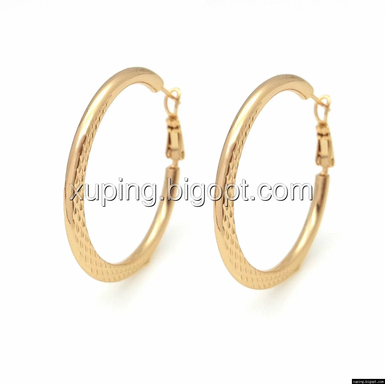 Серьги Кольца с резным узором, позолота Xuping