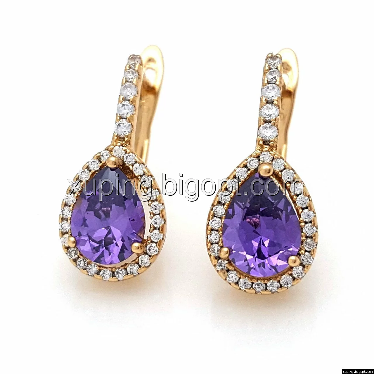 Серьги Капелька, с фиолетовым цирконием, англ.замок, позолота Xuping