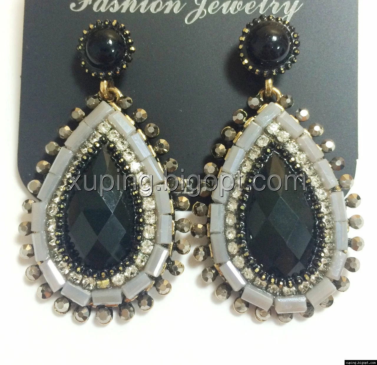 Серьги Капля, Черный матовый кристалл