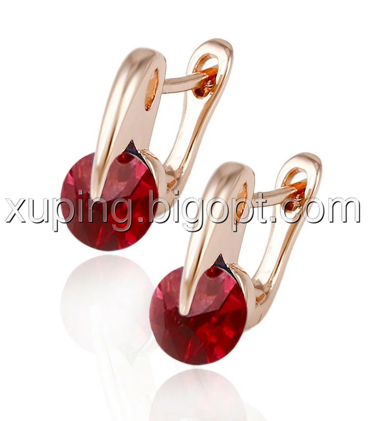 Сережки Класичні, з червоним цирконієм, англ.замок, позолота Xuping, 14К