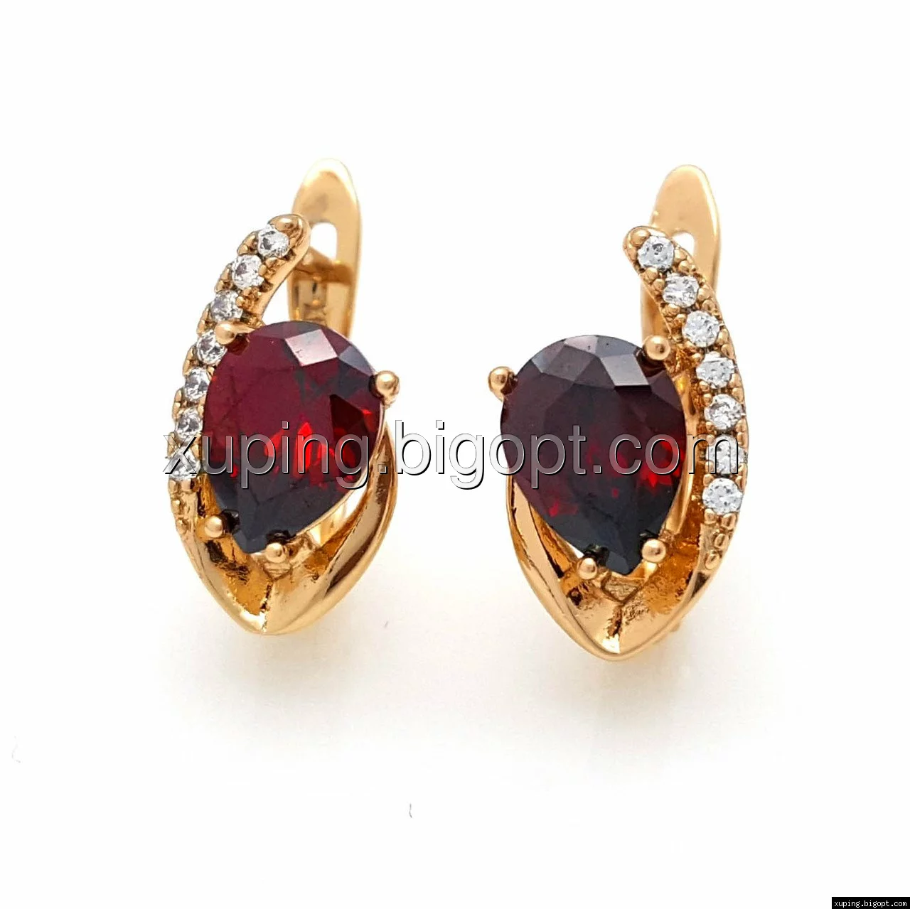 Серьги Красный цирконий, англ.замок, позолота Xuping