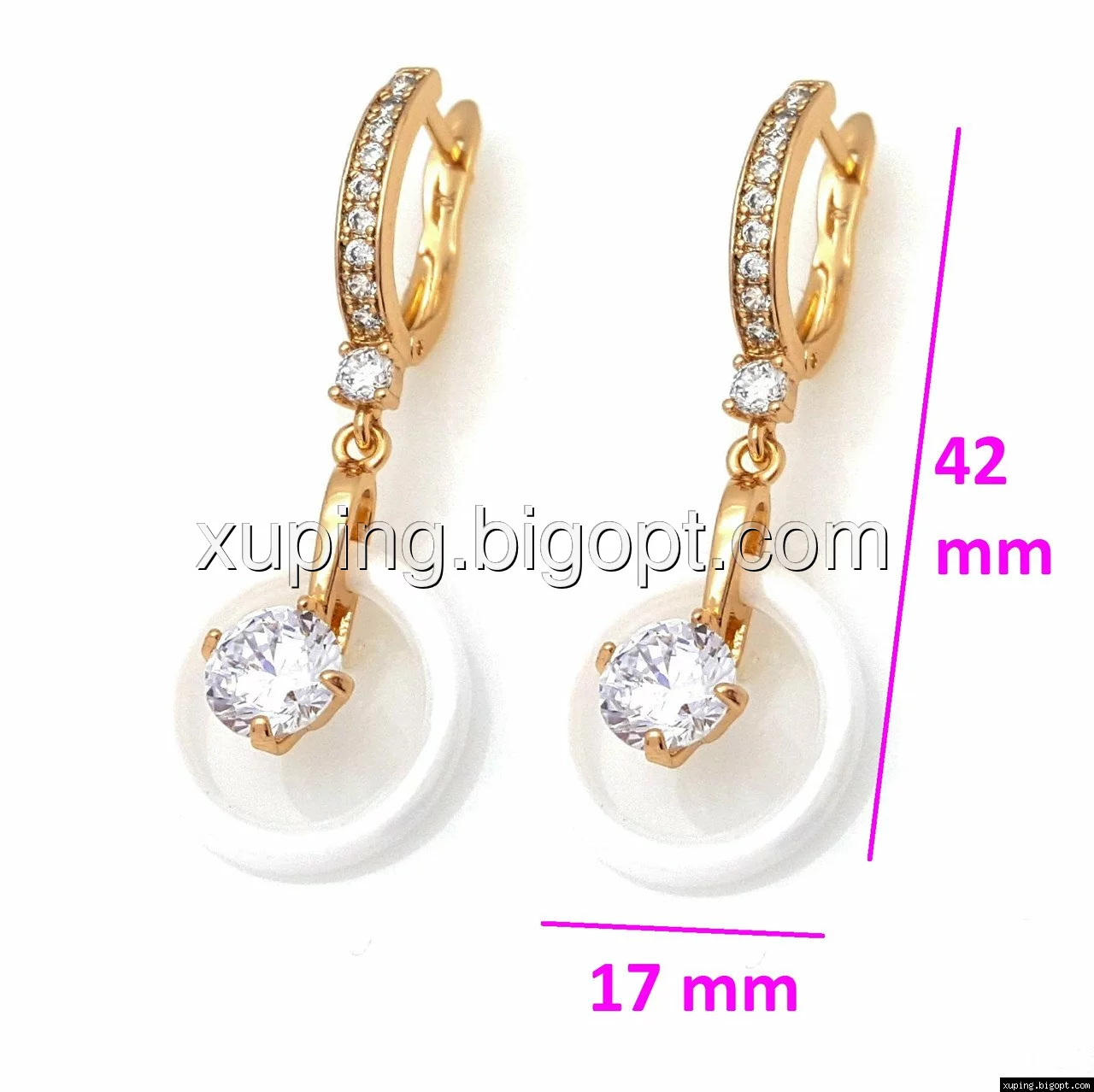 Серьги Круг с керамики, вставка цирконий, англ.замок, позолота Xuping