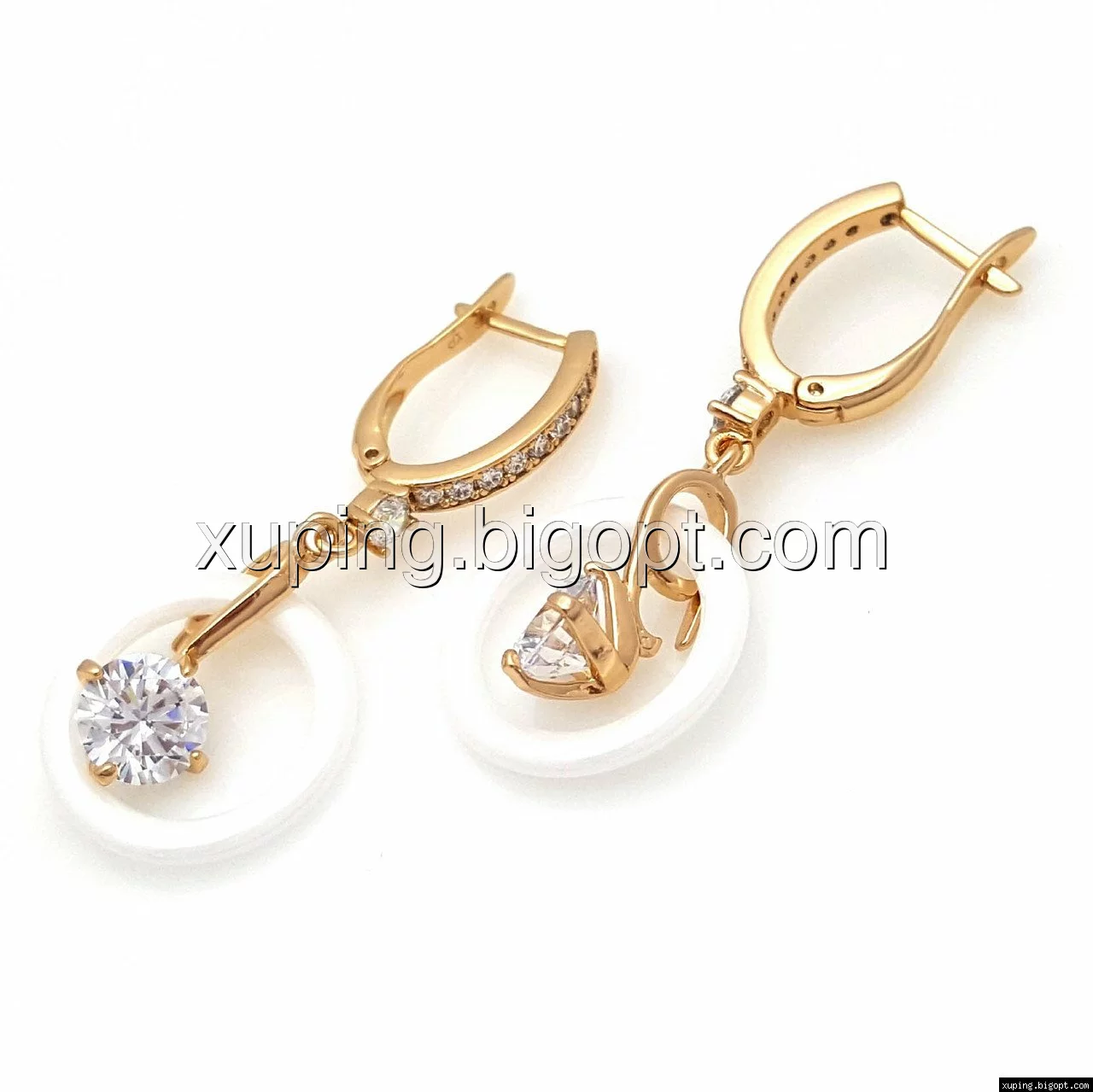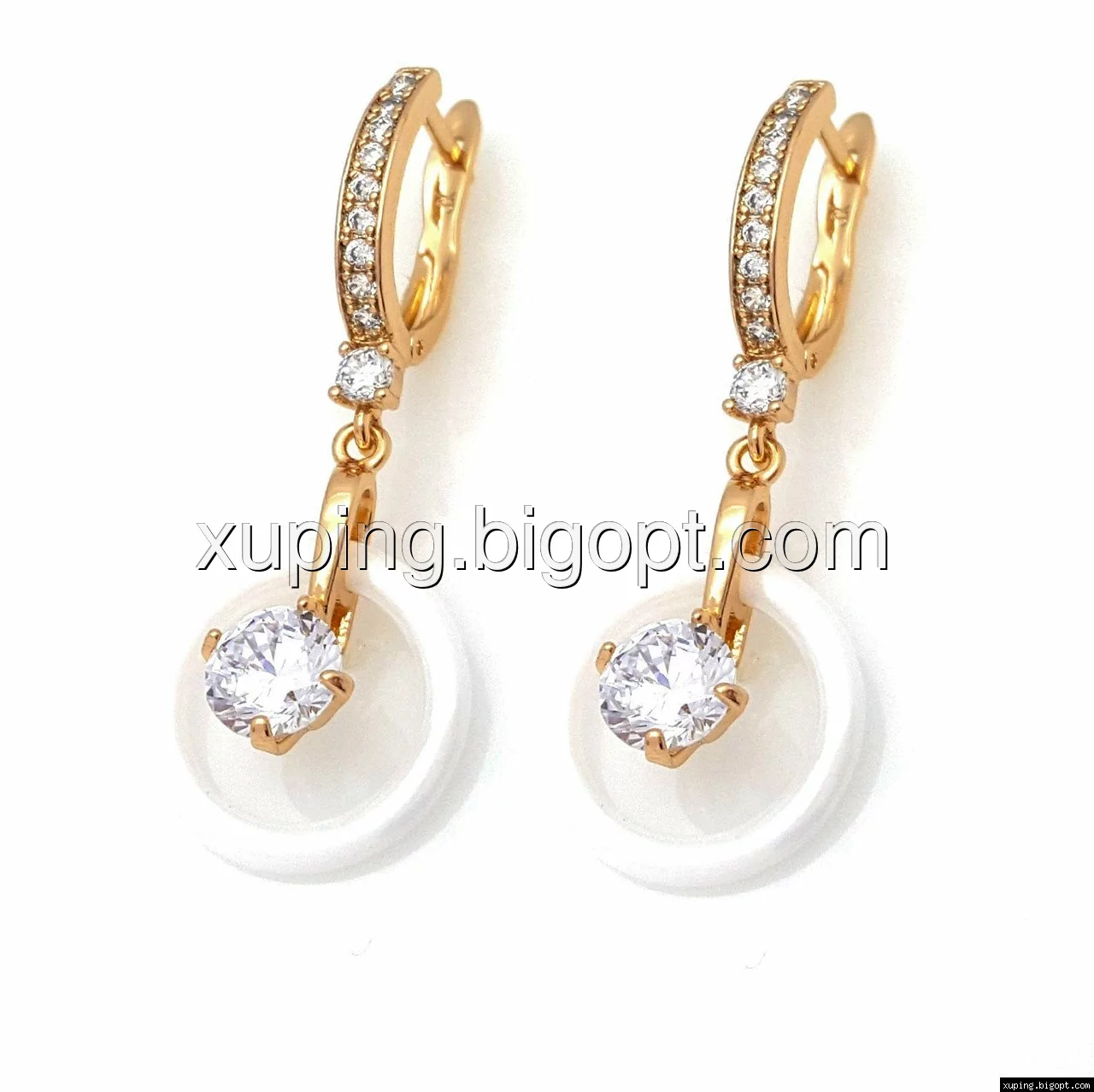 Серьги Круг с керамики, вставка цирконий, англ.замок, позолота Xuping
