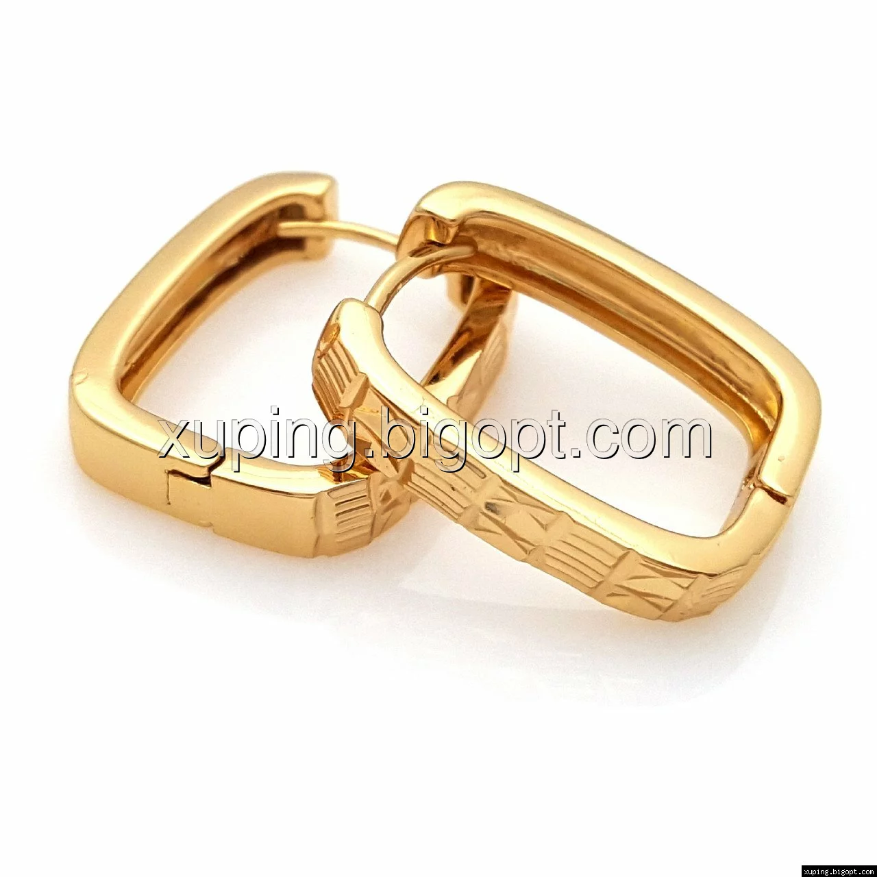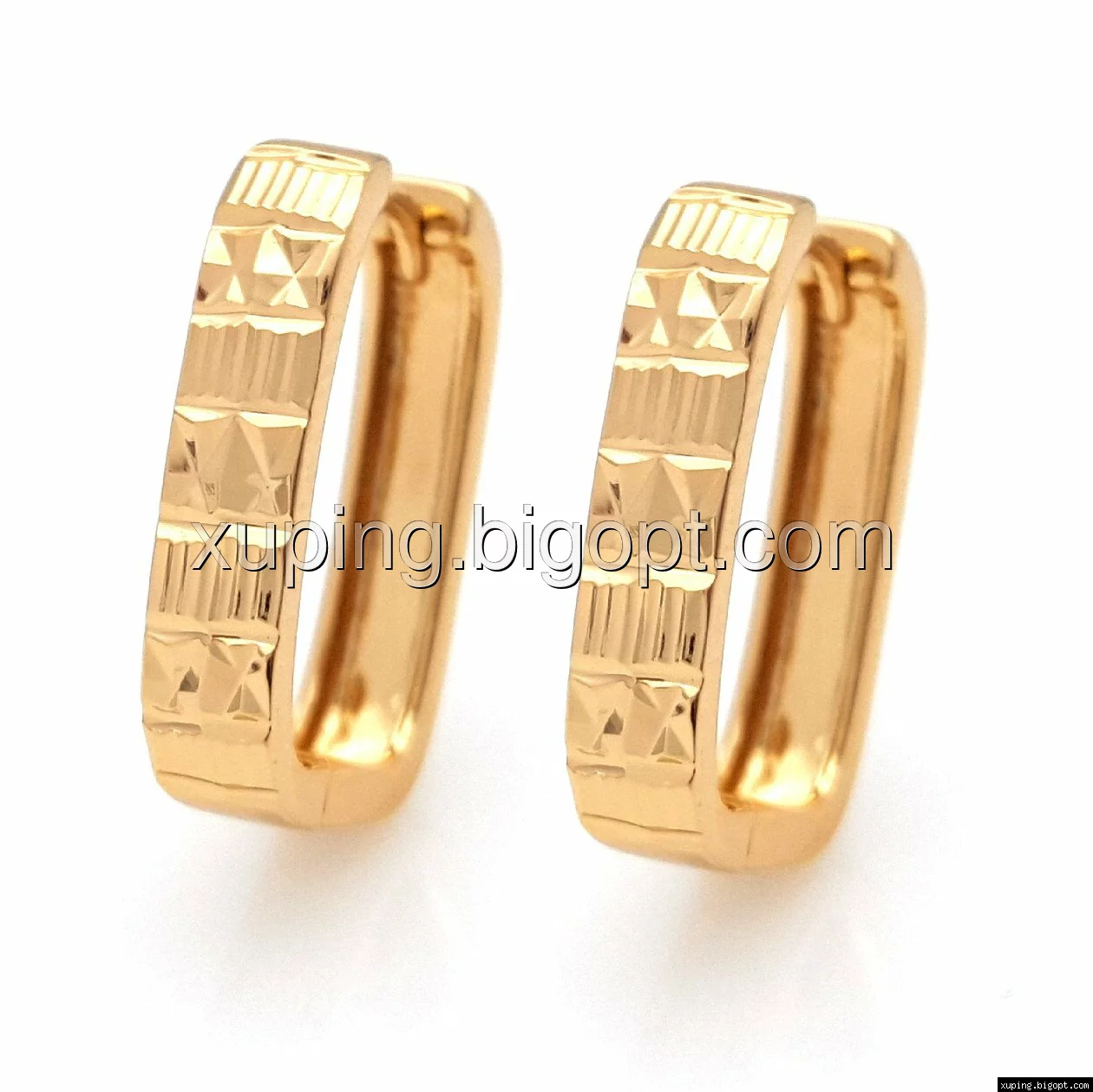 Серьги Квадрат, с резным узором, без камней, позолота Xuping