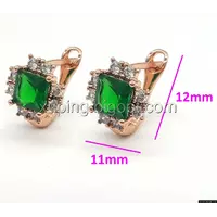 Серьги Квадрат с зеленым цирконием, англ.замок, позолота