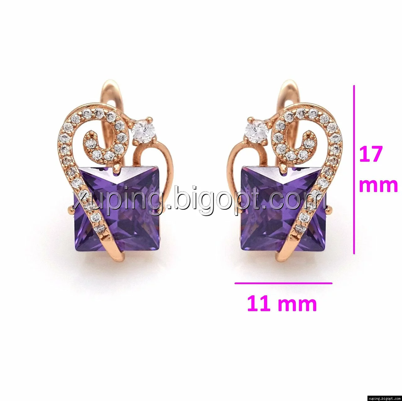 Серьги Квадрат с завитком, фиолетовый цирконий, англ.замок, позолота 14К