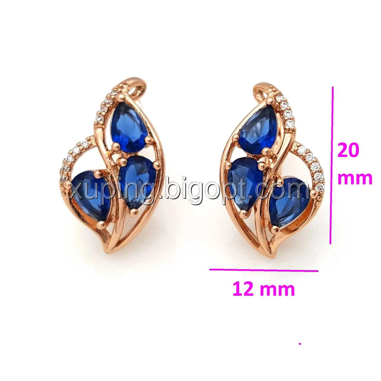 Сережки, Листочок з синім цирконієм, англ.замок, позолота Xuping,14К