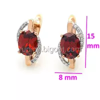 Серьги Мельница с красным цирконием, англ.замок, позолота+родий, 14к