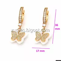 Серьги Бабочка с белой керамики, с камнями, англ.замок, позолота