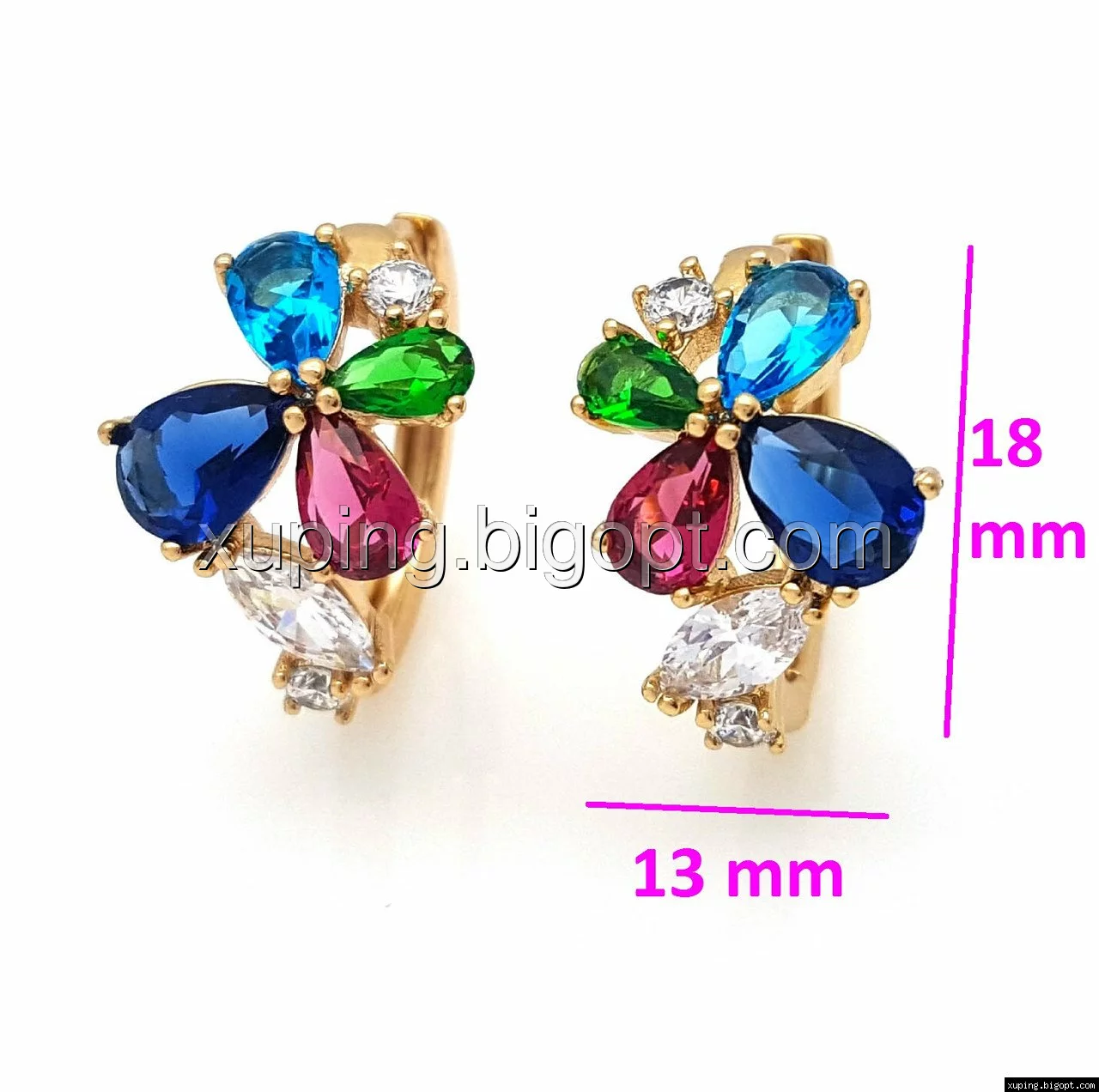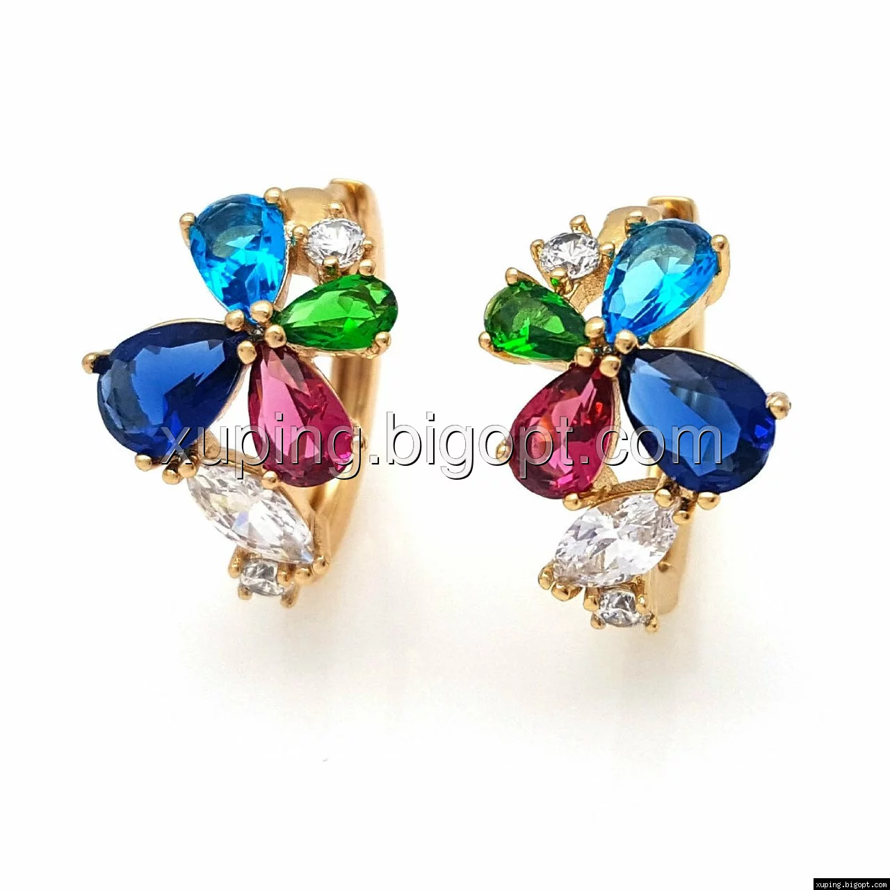 Серьги Бабочка, с разноцветными камнями, позолота Xuping