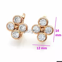 Серьги Ромб, четыре циркония, англ.замок, позолота, 14К