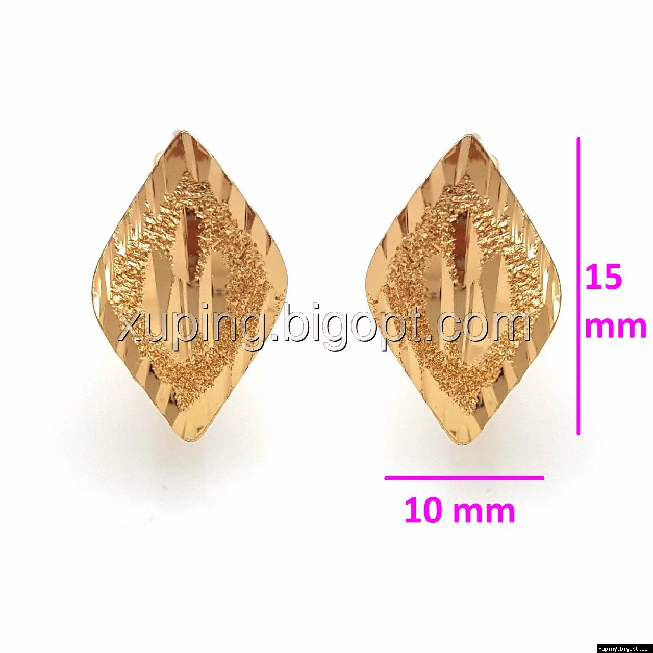 Серьги Ромб с напылением и резным узором, позолота Xuping