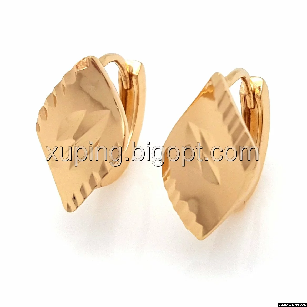 Серьги Ромб, с резным узором,без камней, позолота Xuping