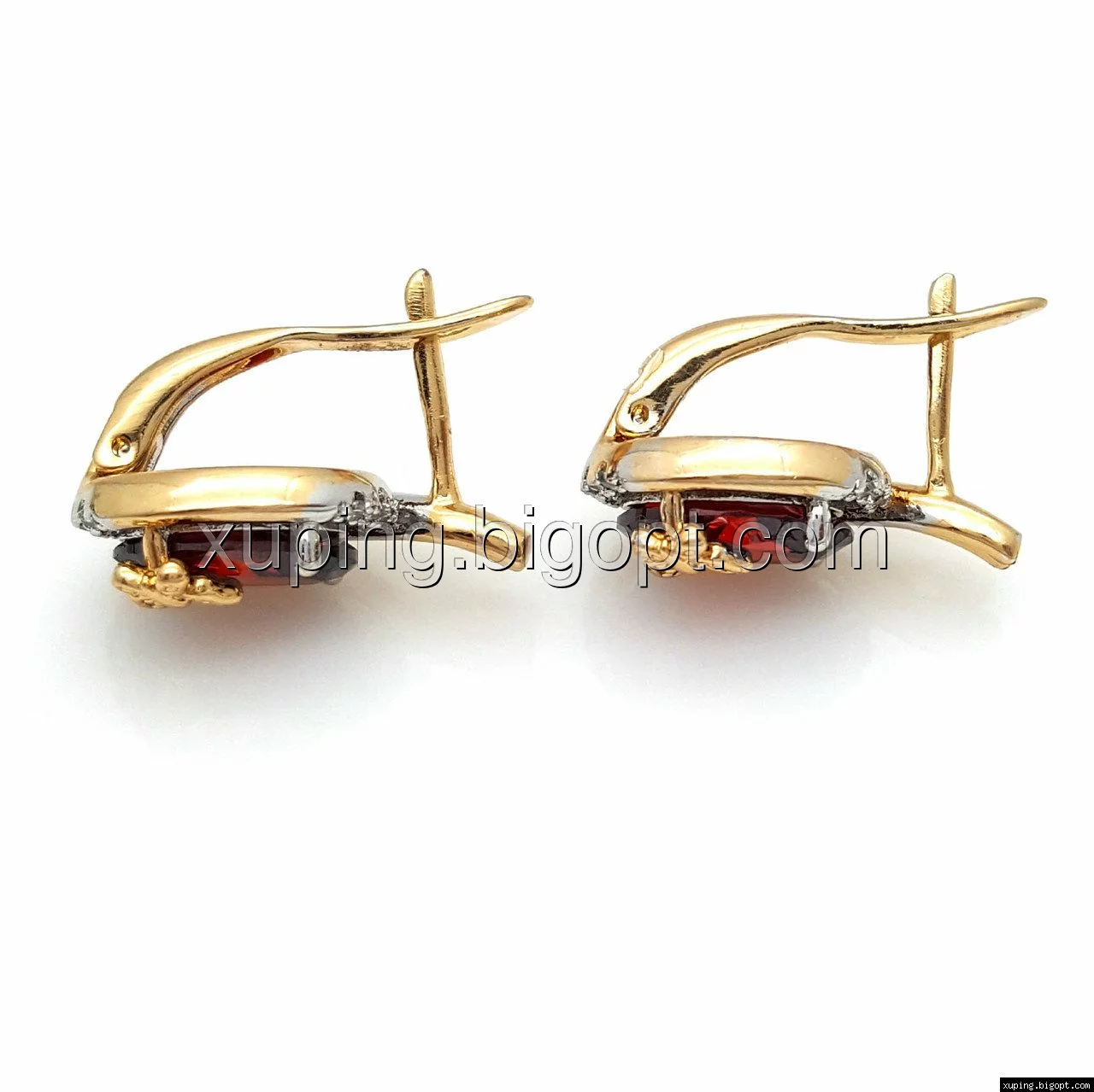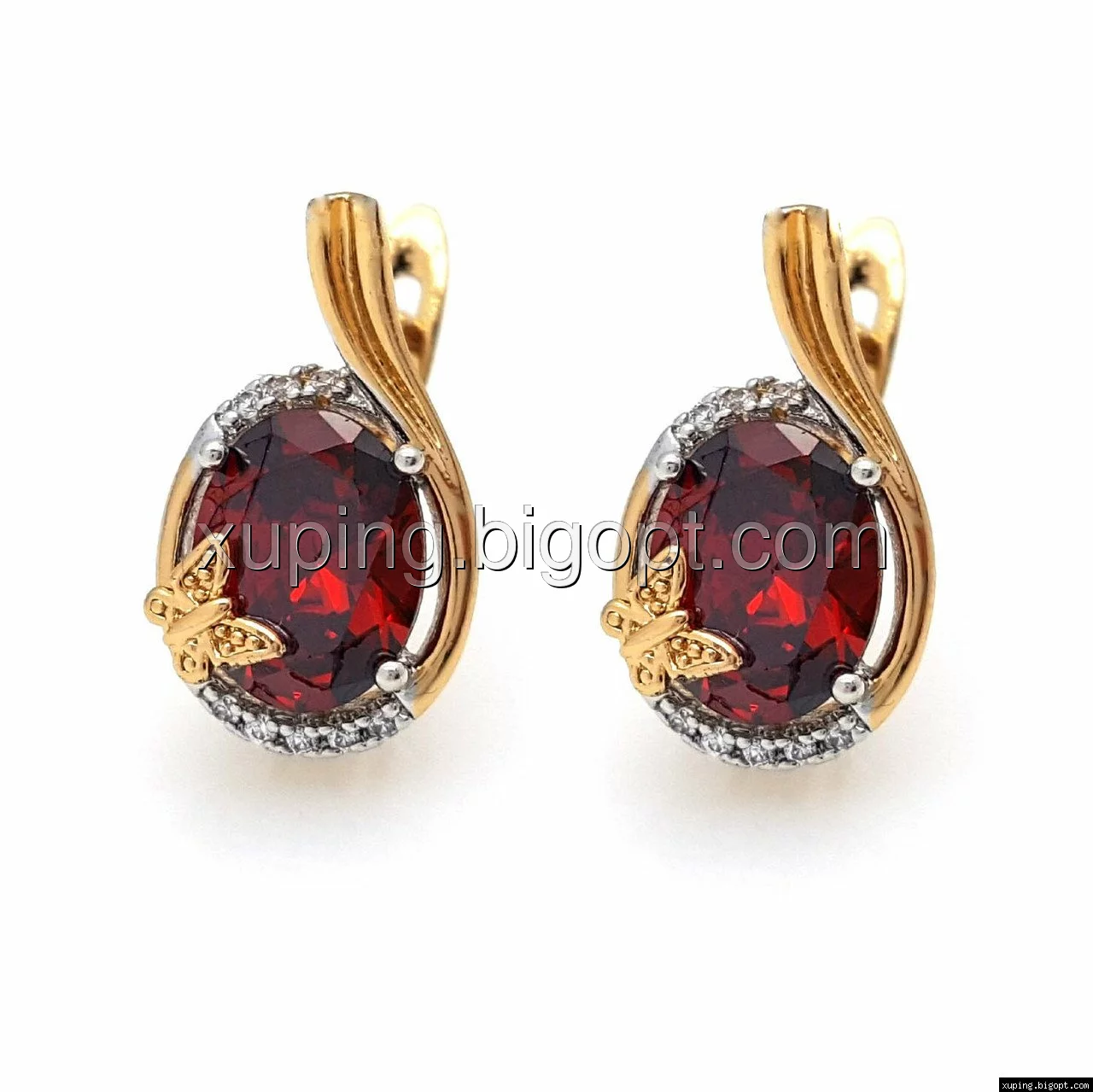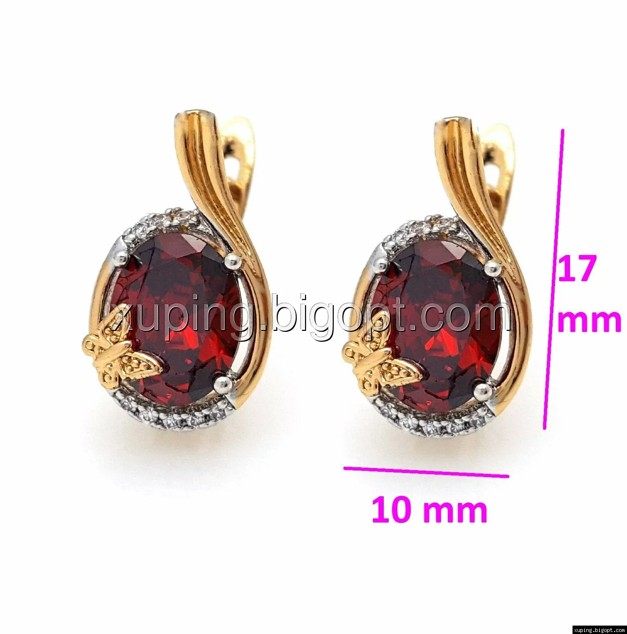 Серьги Овал с красным цирконием и бабочкой, англ.замок, позолота+родий, Xuping