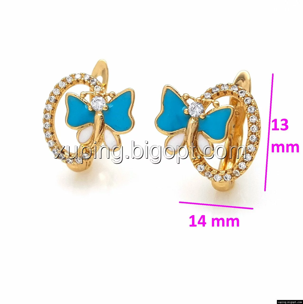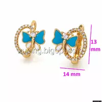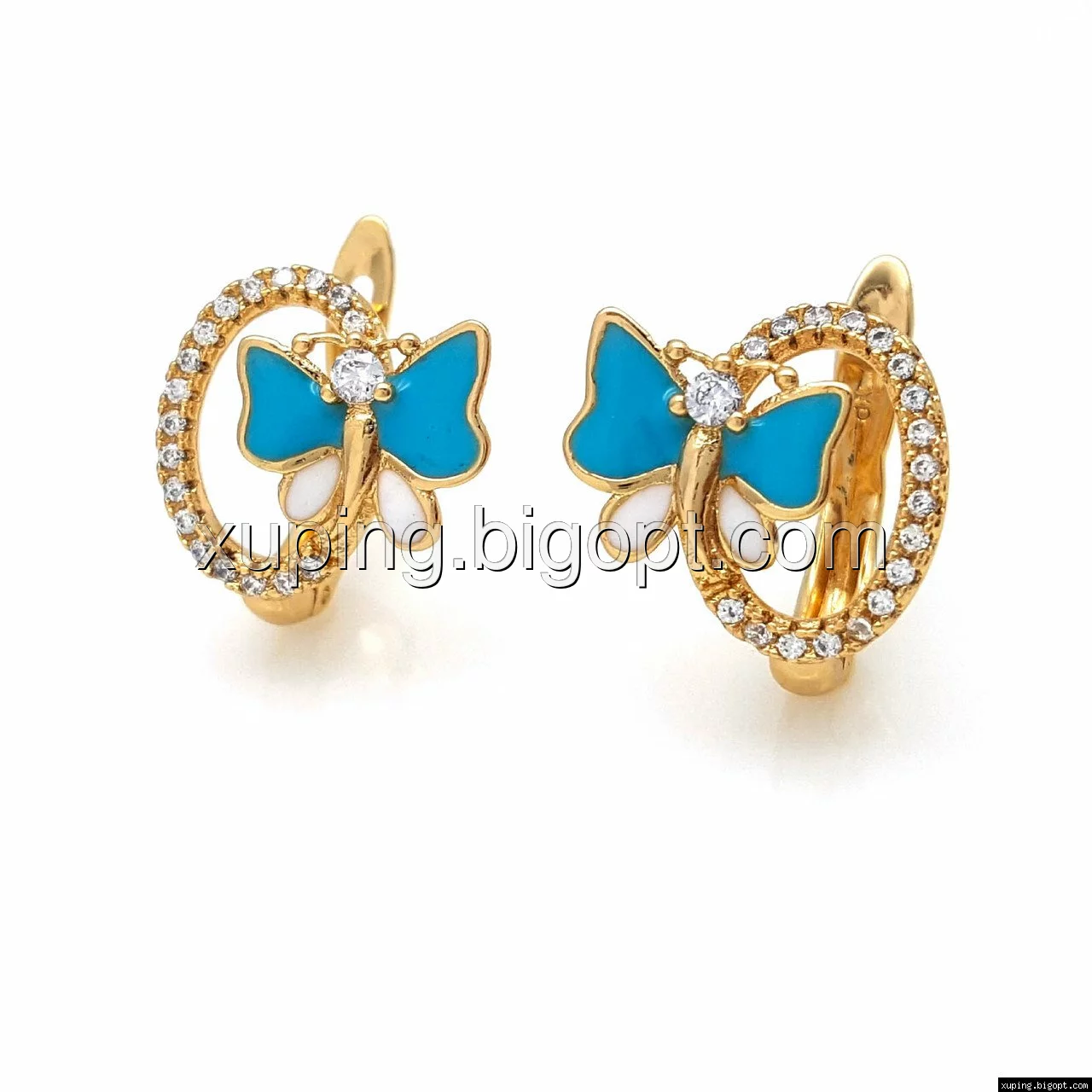 Серьги Овал с бабочкой, в россыпи камней и эмалью, позолота
